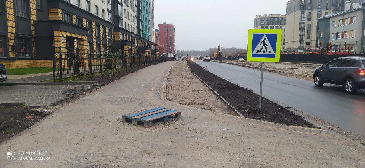 В последние осенние дни продолжались работы на дорожных объектах Калининграда, правда пришлось учитывать погодные условия.