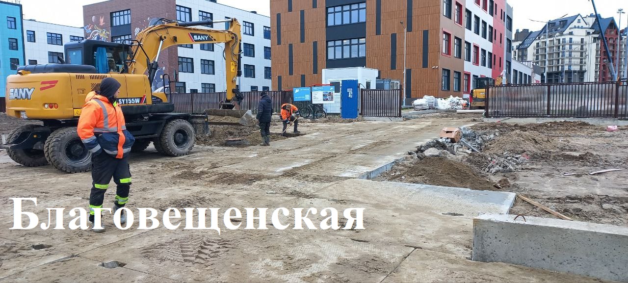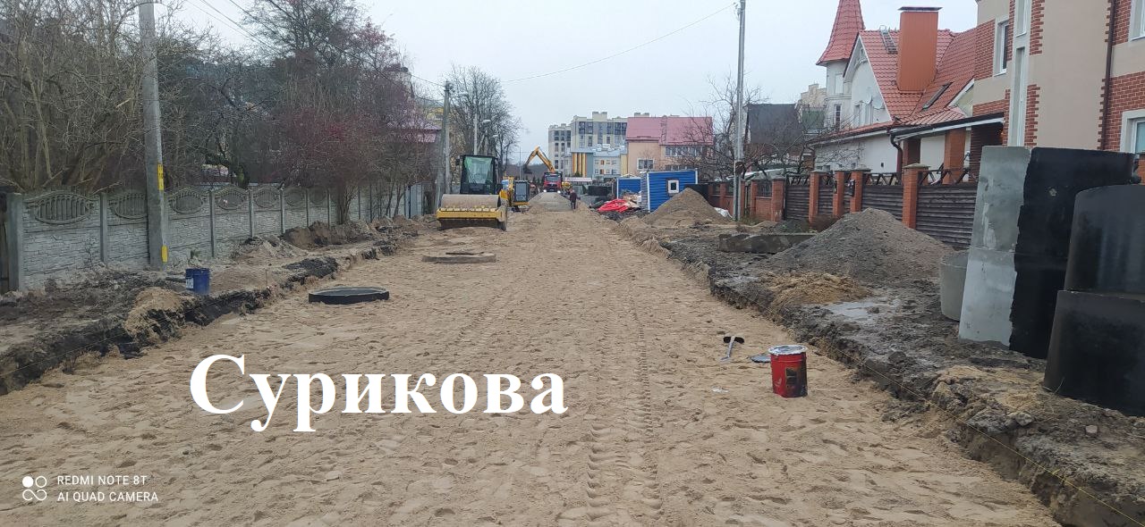 На ул. Мариенко основные работы приостановлены до весны, но продолжается установка закладных для опор освещения, на ул. Сурикова - устройство инженерных сетей и основания дороги из песка. Благовещенская: дорожники закончили въезды к школе, по всей дороге (2 этап) завершают выравнивание плит и наводят порядок. На Букетной на этой неделе должны установить опоры освещения, укладка второго слоя асфальта будет сделана в следующем году. На Ясной - устройство дождевой канализации, засыпка песком трубы 500 мм, очистка дренажной канавы.