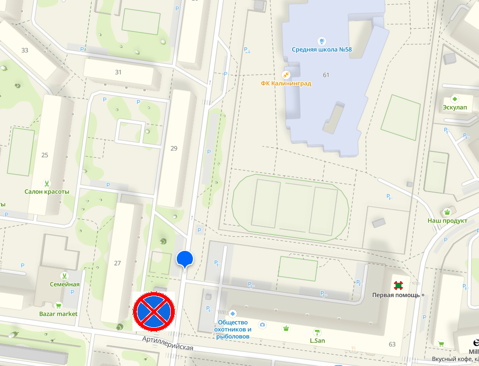 20 декабря в проезде от ул. Артиллерийской к школе №58 в районе дома № 63 будут установлены дорожные знаки 3.27 «Остановка запрещена».