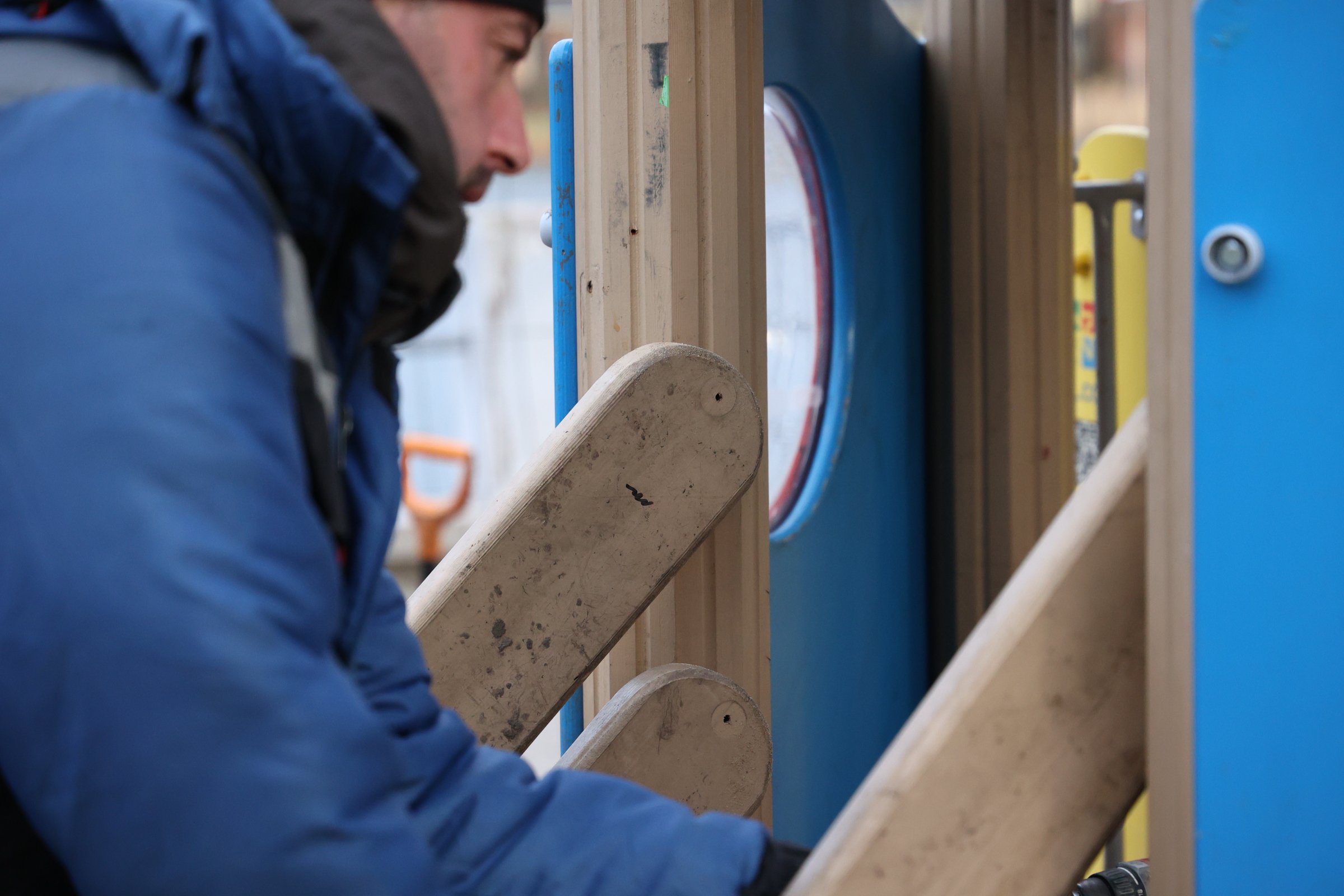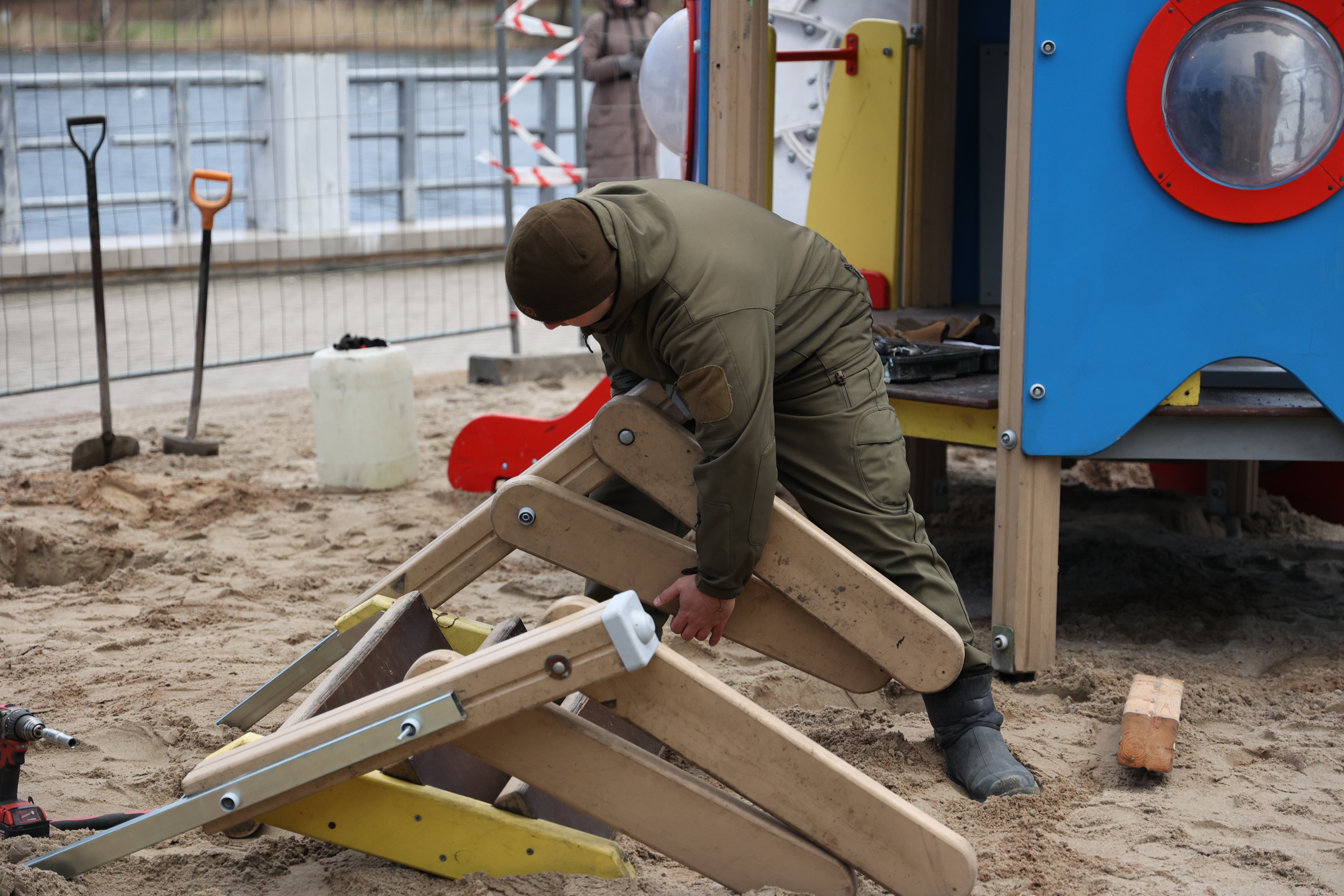 Первой стала площадка в Южном парке, там силами подрядной организации производится монтаж детской площадки, которая ранее размещалась в парке им. Ю.А. Гагарина. Уже устроено покрытие детской площадки из песка, на 90% установлено игровое оборудование. Представитель подрядной организации заверил Елену Дятлову, что завершит все работы в начале следующей недели.