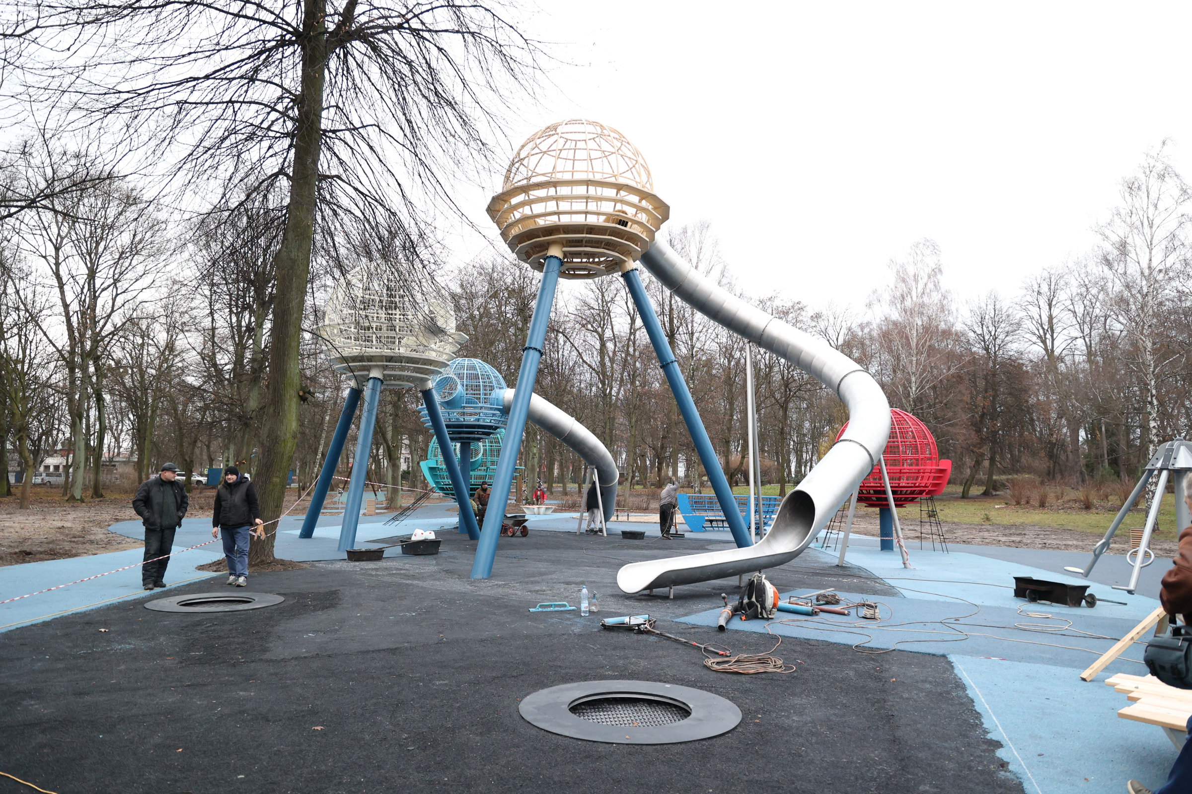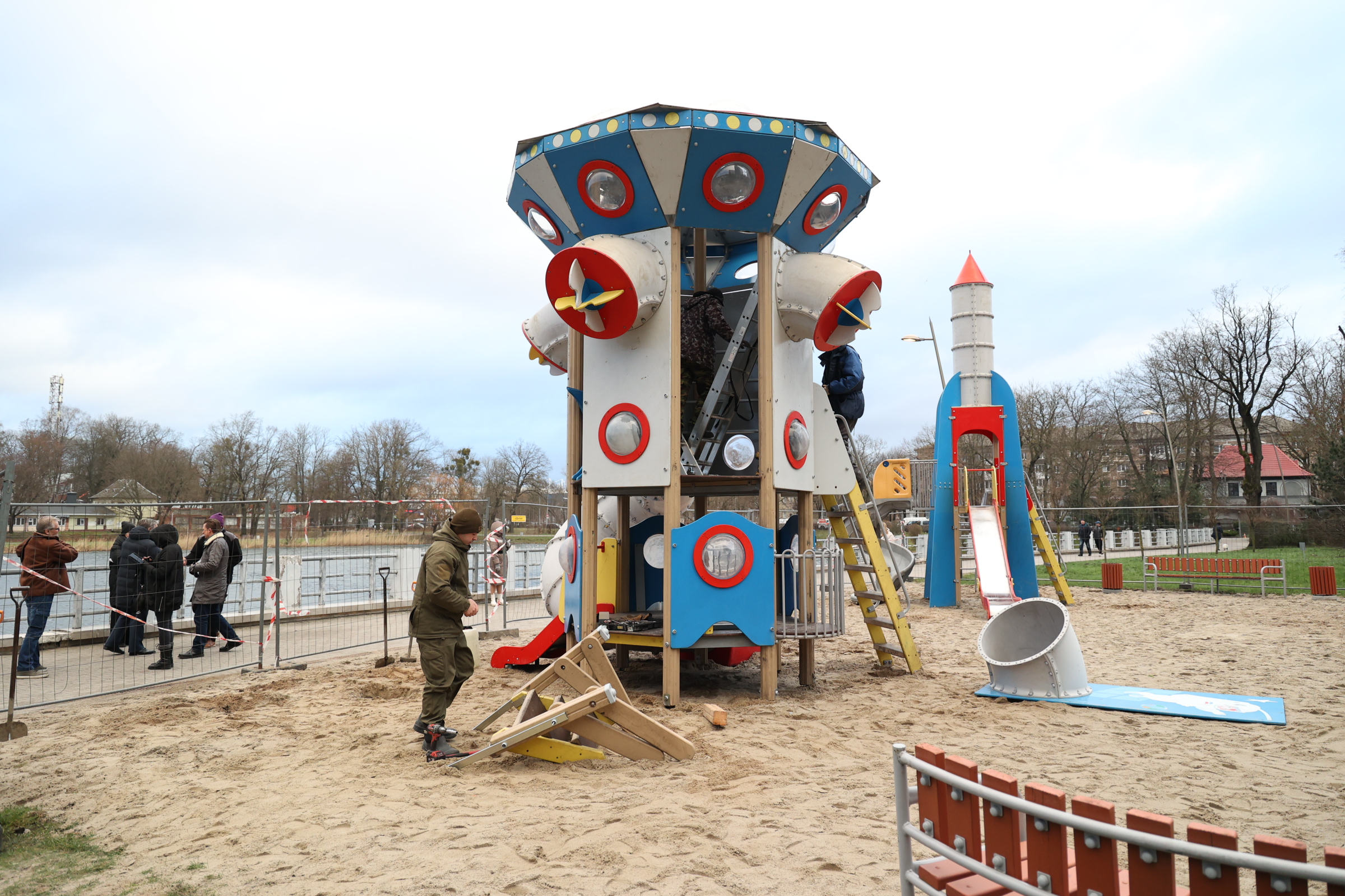Далее проинспектировали новую детскую площадку в парке имени Юрия Гагарина. Там возводится площадка в космической тематике. В рамках контракта предусмотрено благоустройство территории с созданием детского игрового пространства протяженностью около 130 метров, включающего в себя комплекс развивающего и познавательного игрового оборудования.
