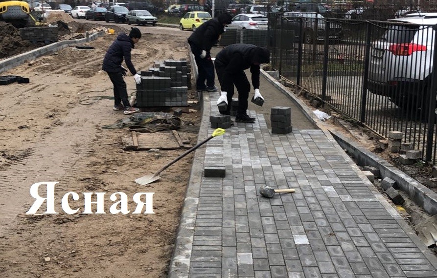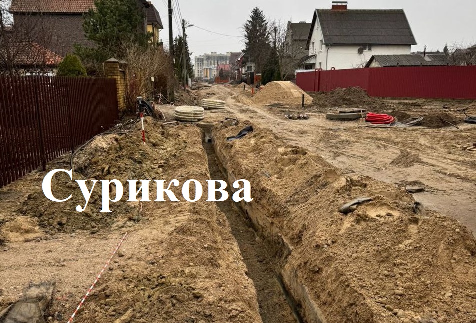 На ул. Сурикова продолжают устройство дренажа и подключение дождеприёмных колодцев, на Ясной мостят плиткой тротуары, укрепляют откосы, отсыпают грунт под озеленение.