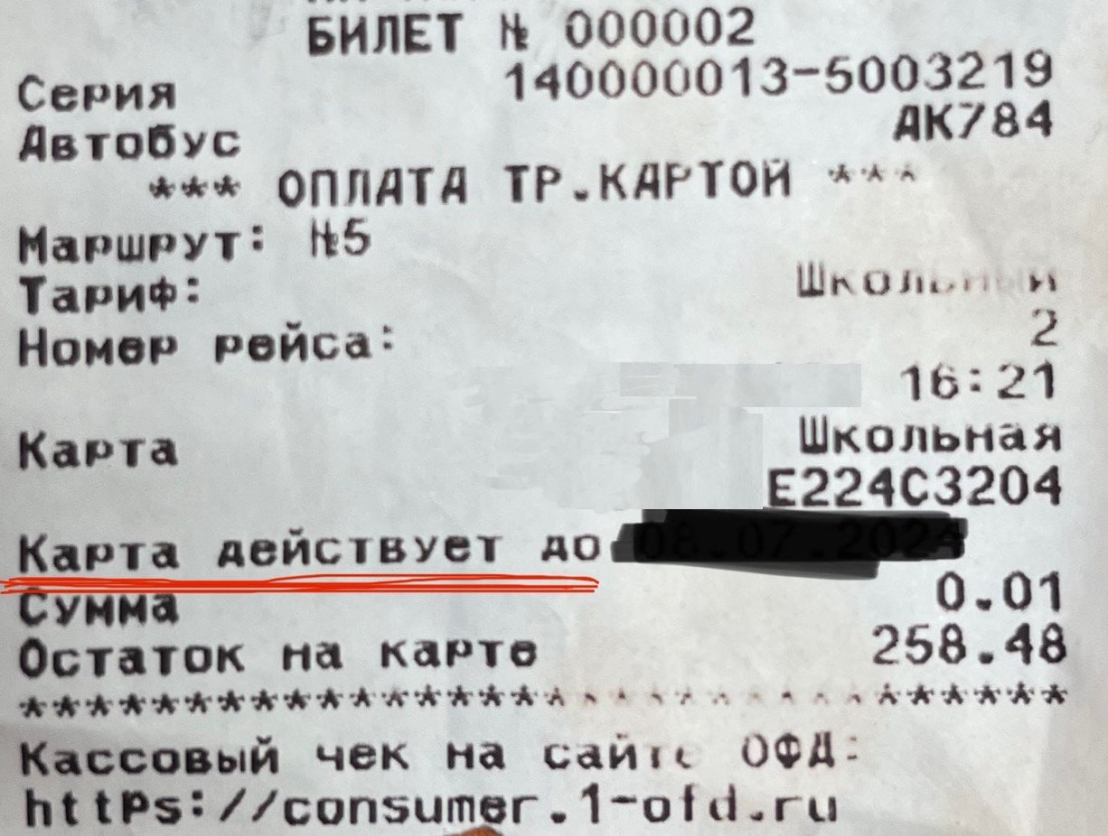 За 3 месяца до окончания срока действия льготной карты в билете об оплате проезда начинает отображаться информация «Карта действует до… /число, месяц, год/».