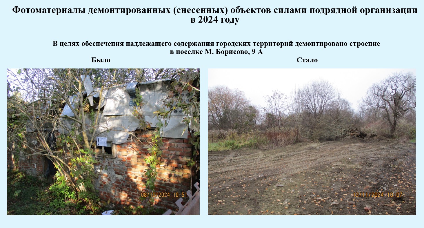 Также комитетом велась работа по выявлению и демонтажу самовольно возведенных некапитальных строений. В 2024 году проводились мероприятия в отношении 851 объекта (376 объектов снесены добровольно или подрядчиком, в отношении 475 объектов изданы распоряжения о сносе).