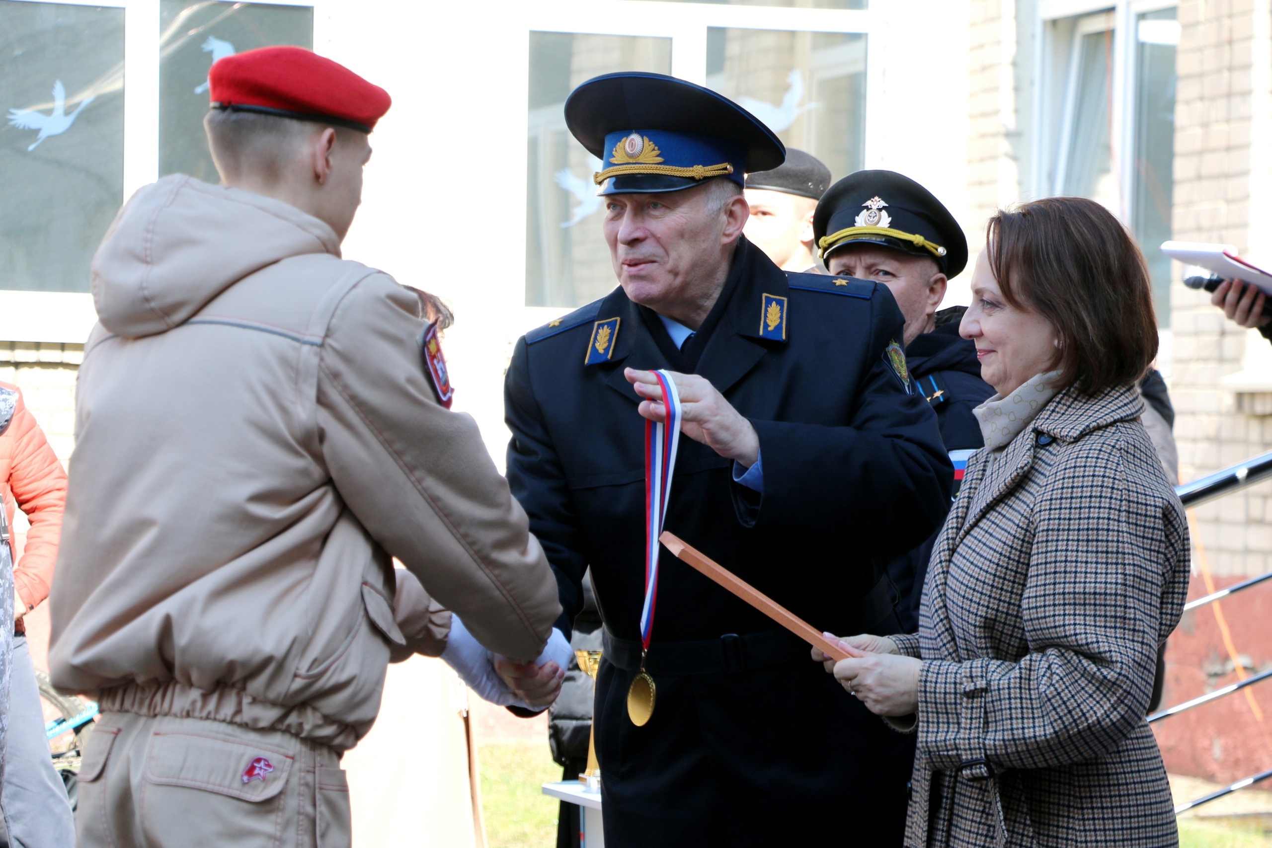 Заместитель председателя городского Совета депутатов Калининграда, генерал-майор Юрий Васильевич Саломохин и председатель комитета по образованию администрации Калининграда Татьяна Михайловна Петухова наградили Дипломами комитета по образованию и почетными призами лучшие три команды и участников, занявших 1, 2, 3 места в личном зачете среди юношей и девушек.