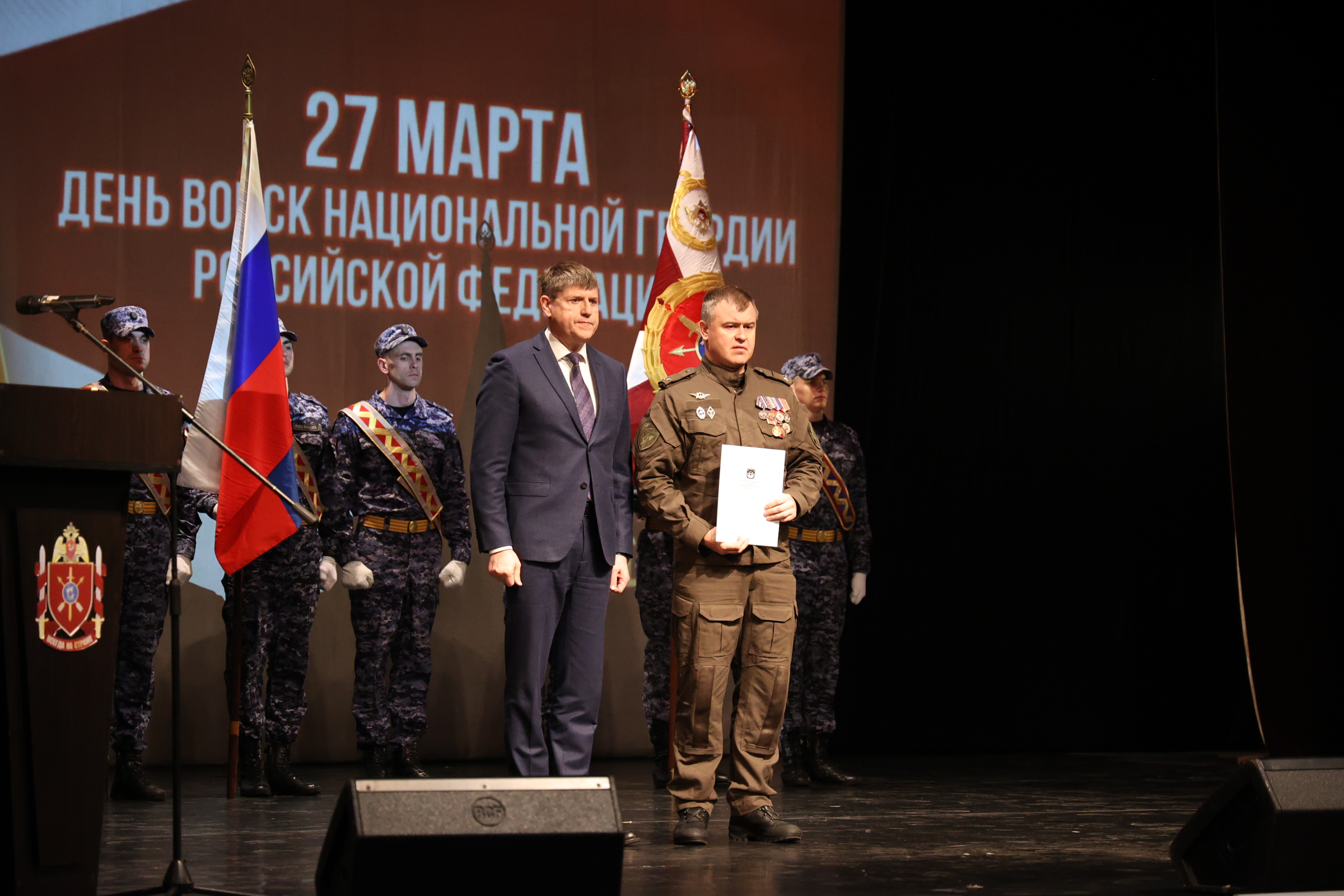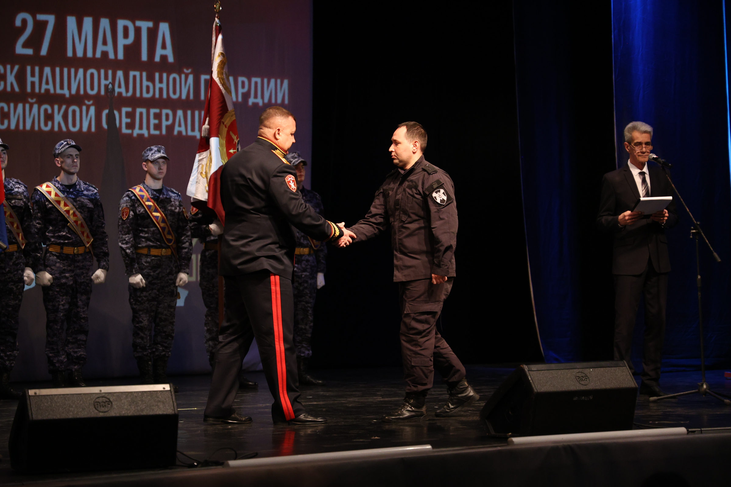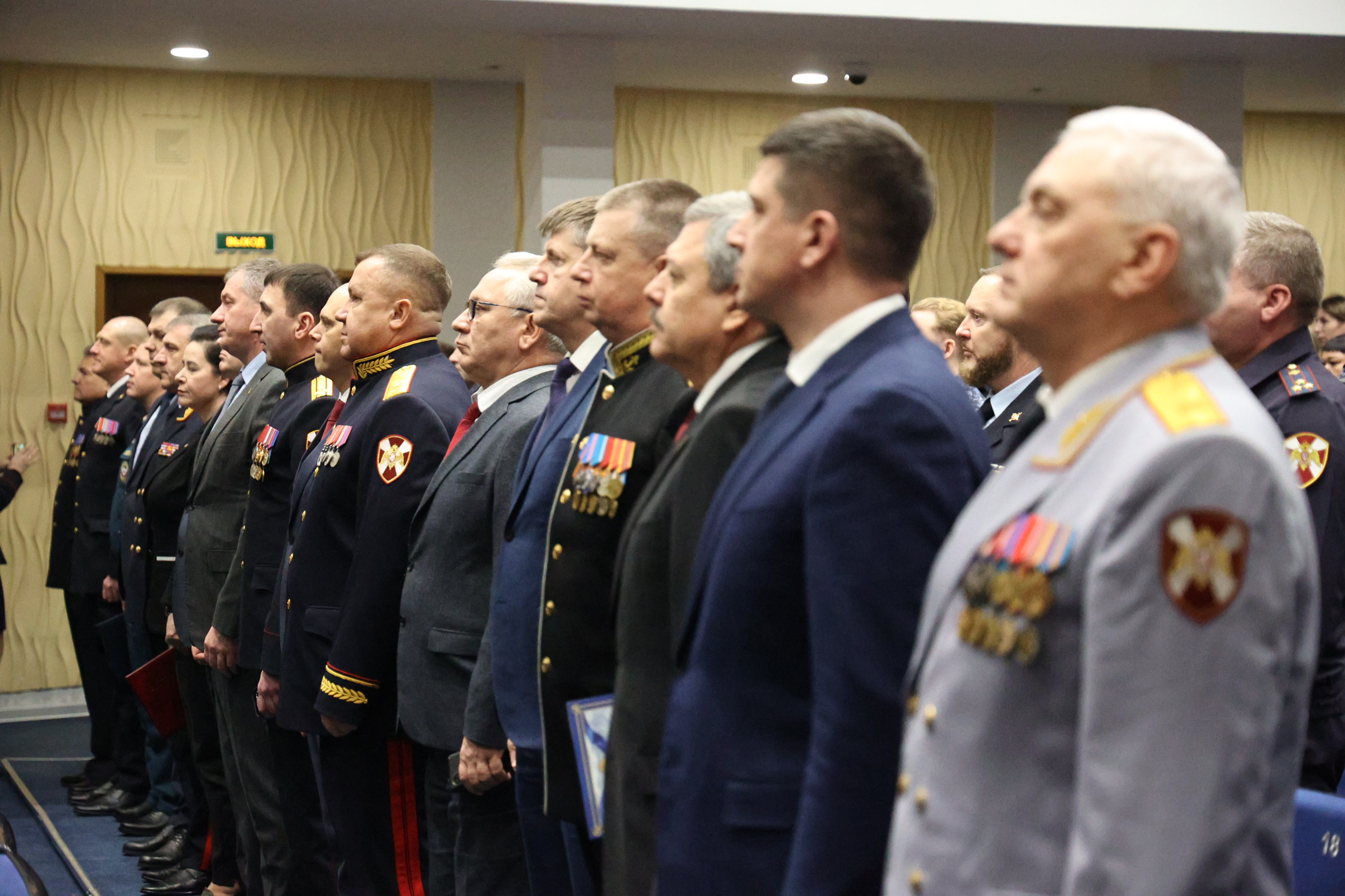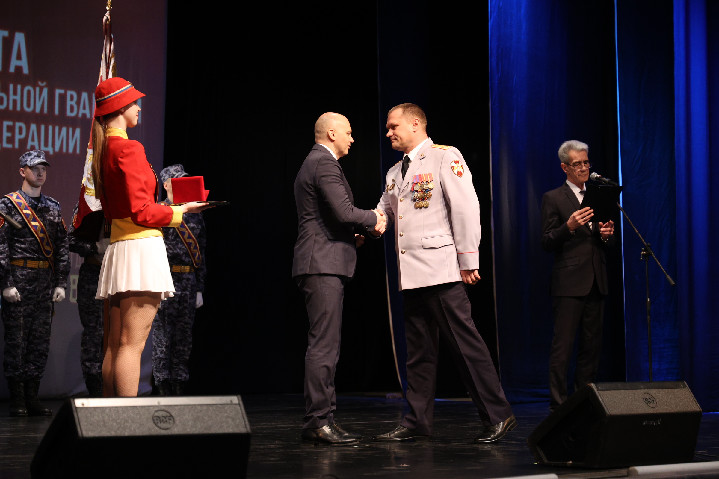 На торжественном мероприятии руководители города и области, представители федеральных силовых структур поздравили росгвардейцев и вручили награды за успехи в службе.