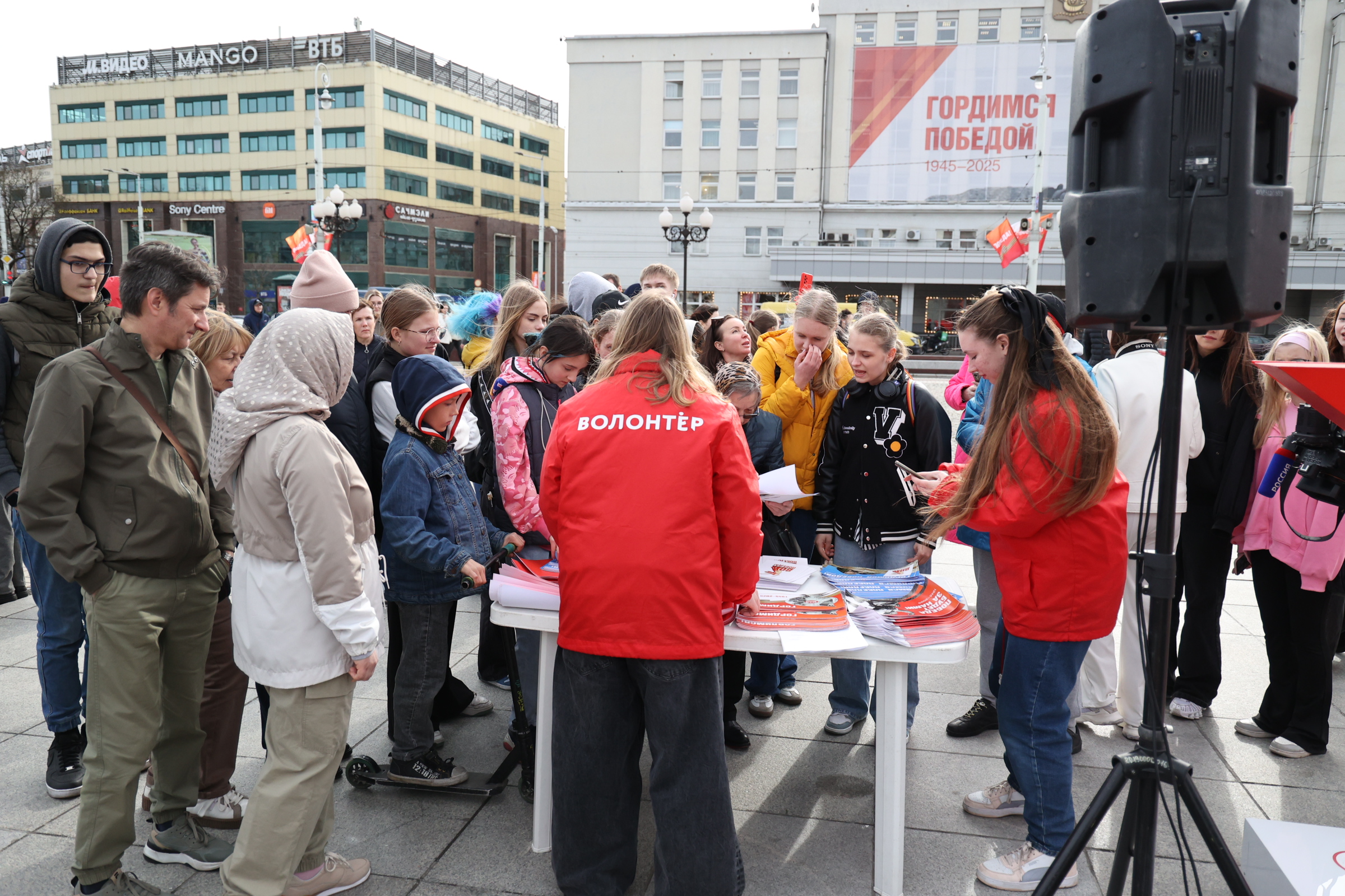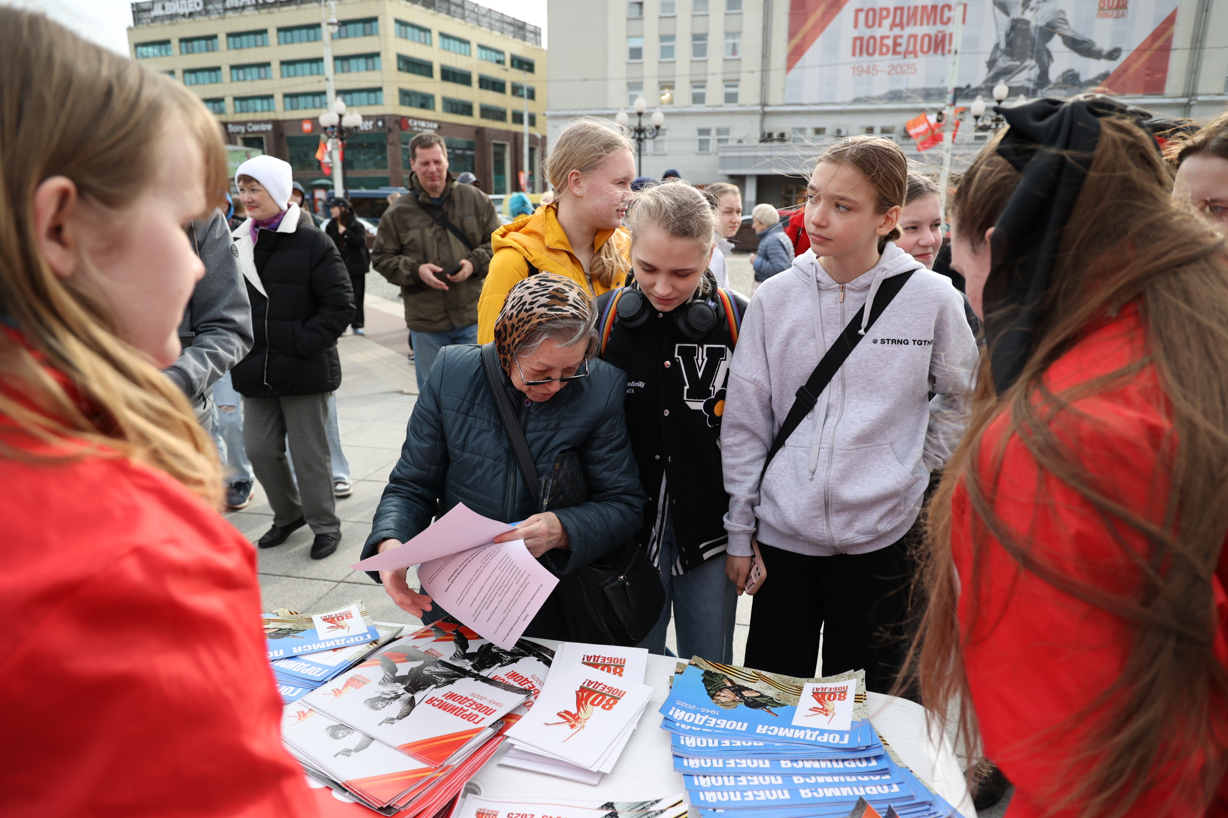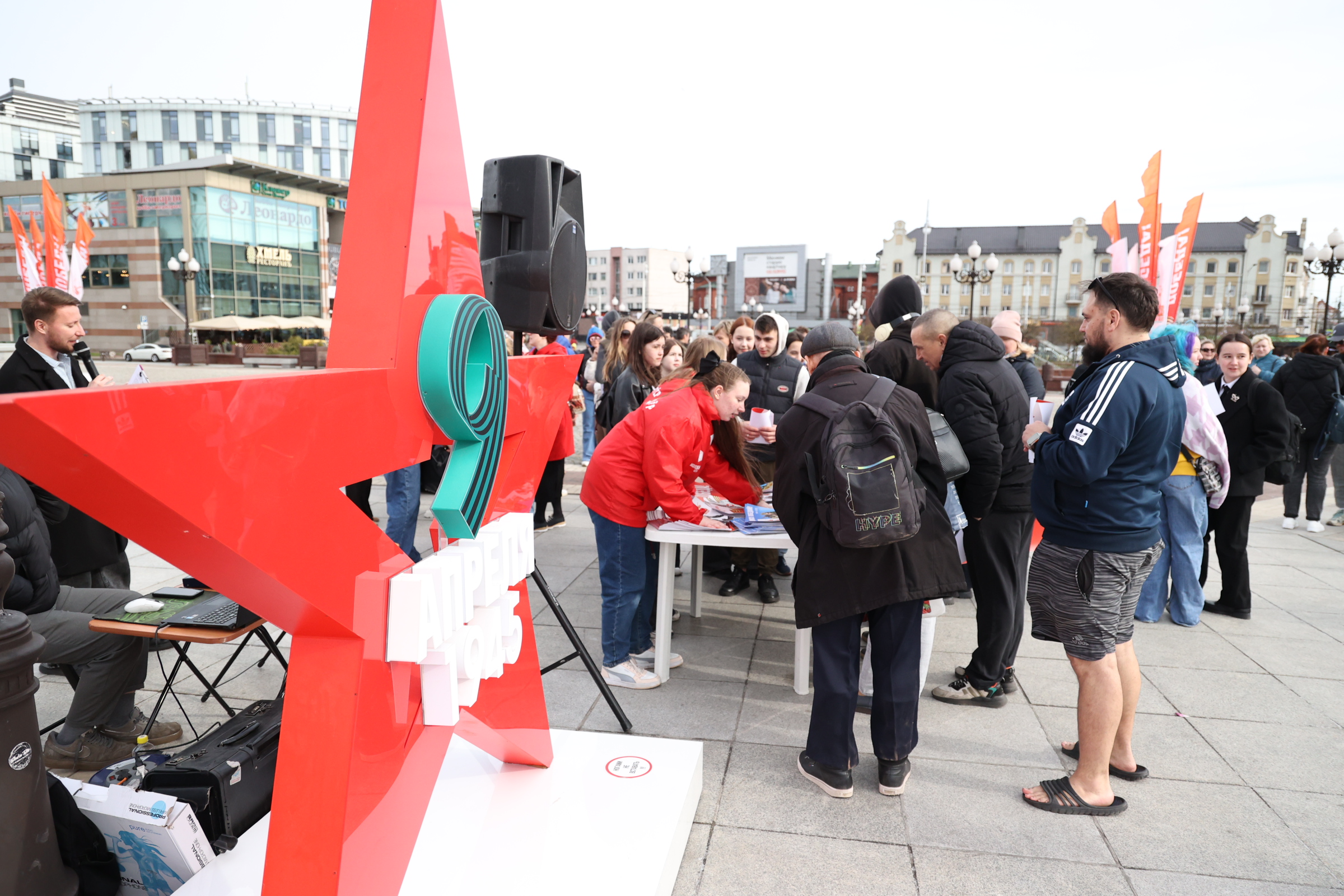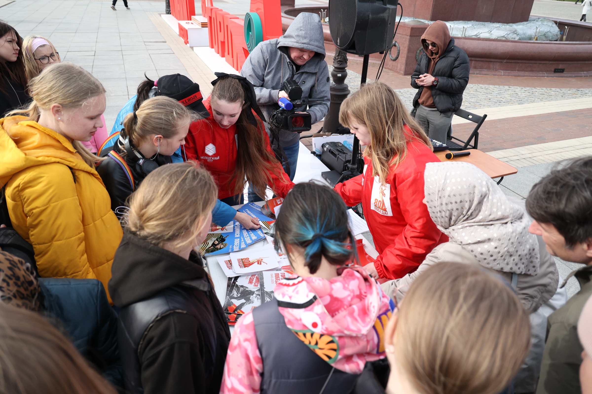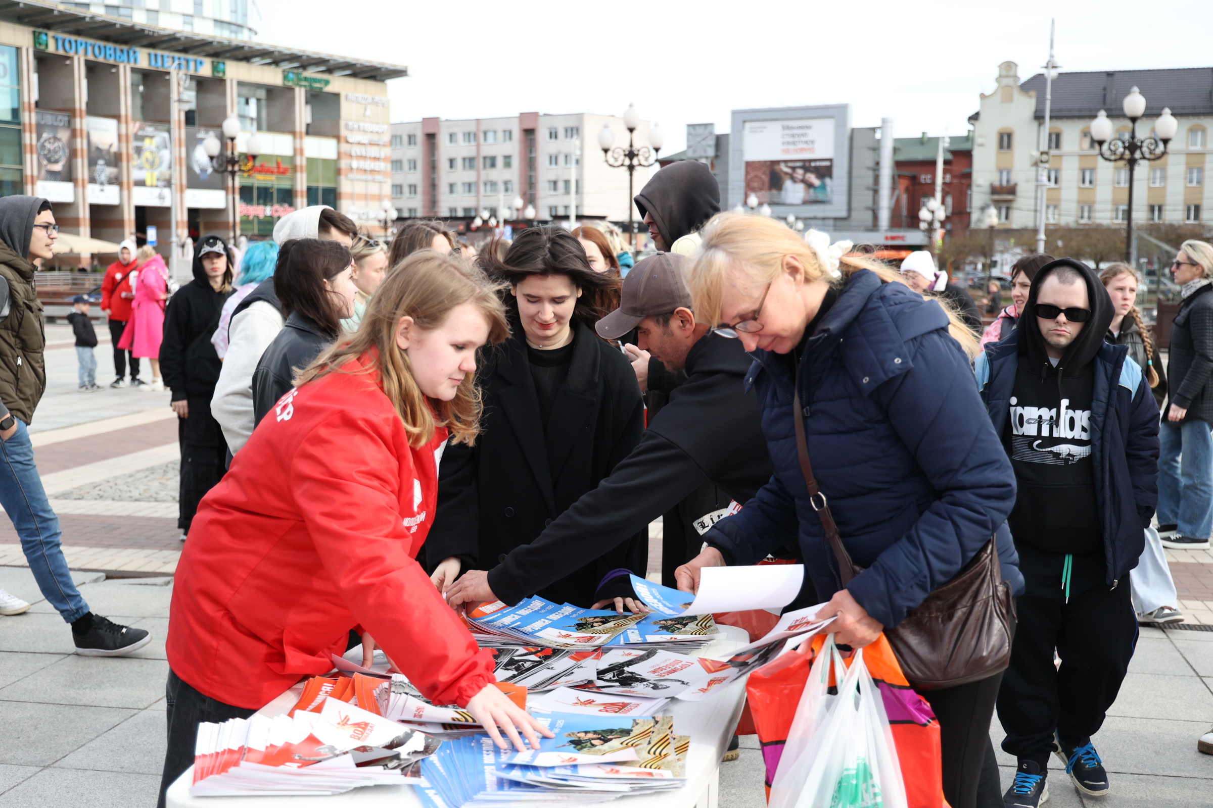 В Калининграде уже проходят мероприятия, приуроченные к памятным датам. Сегодня на площади Победы, волонтёры раздавали калининградцам и гостям города памятные ленты и наклейки для брендирования личного автотранспорта с символикой Победы.