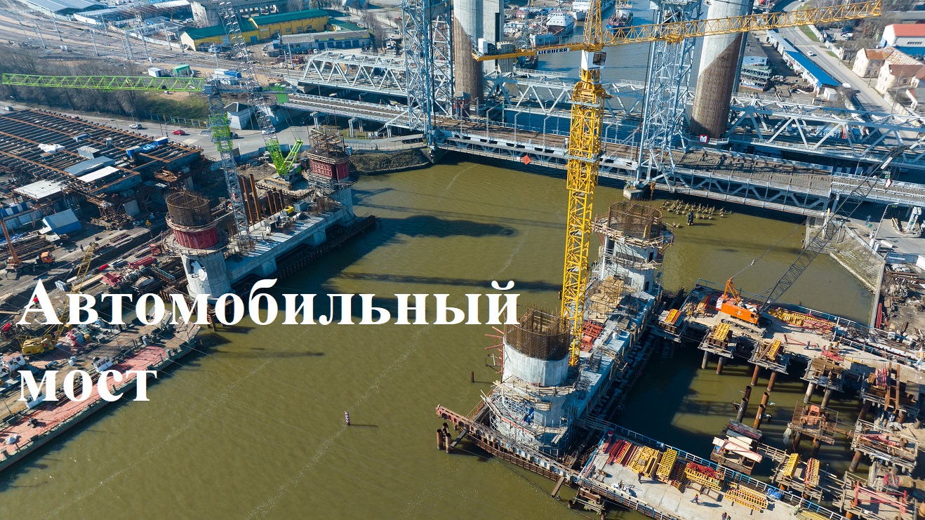 На строительстве автомобильного моста работают 284 человека, им в помощь придано уже 40 единиц техники. Они продолжают поэтапное армирование башен опор; монтаж опалубок; сборку смонтированных блоков на временных опорах; погружение свай и стапельных труб; прокладку сетей.