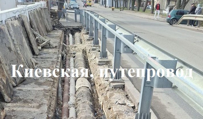 Под тротуаром путепровода на Киевская/Садовая «Водоканал» меняет аварийную сеть, а специалисты МКУ «Городское дорожное строительство и ремонт» обследуют конструкции для определения объёмов необходимого ремонта.