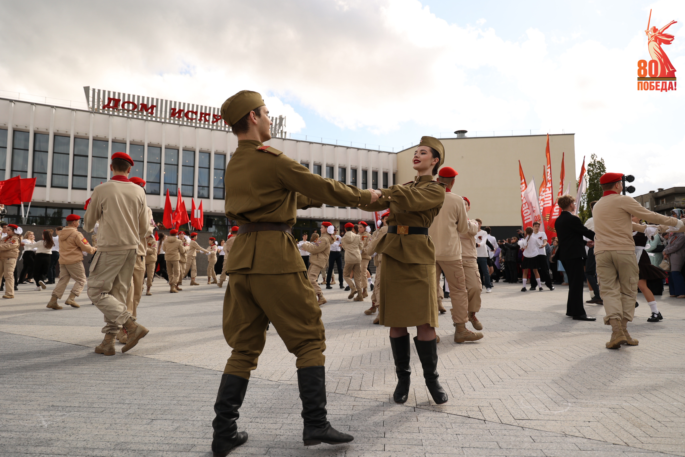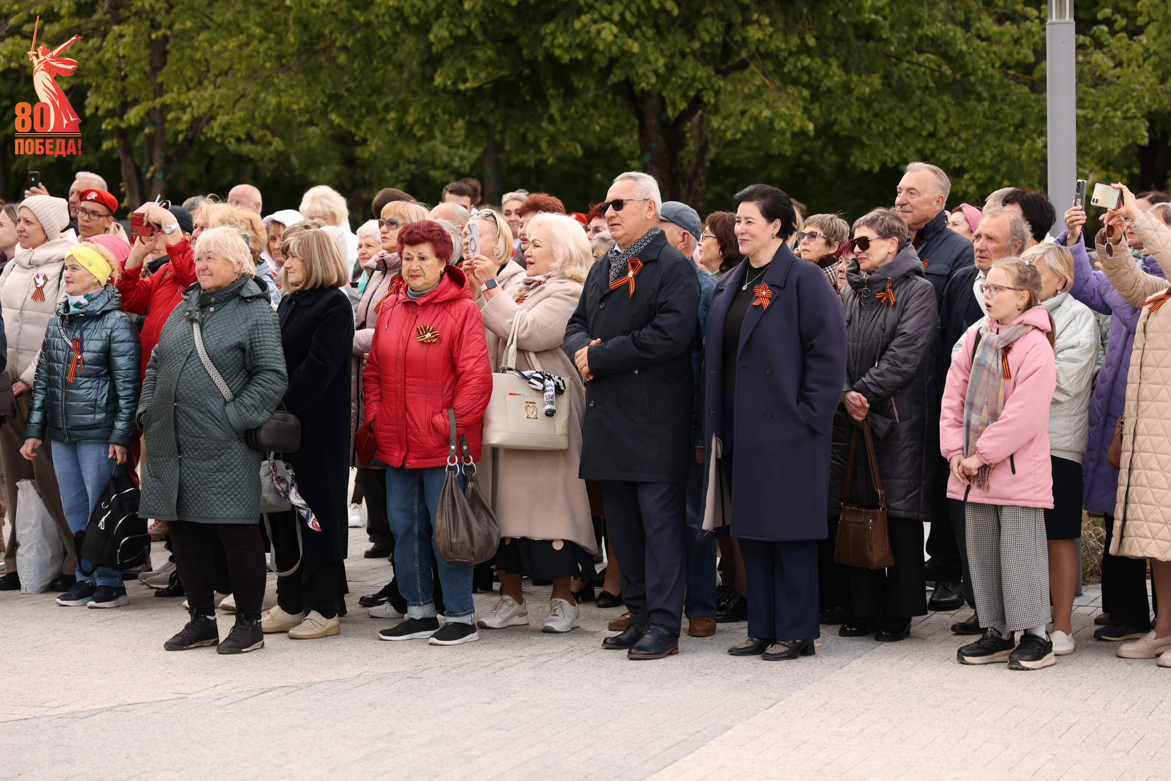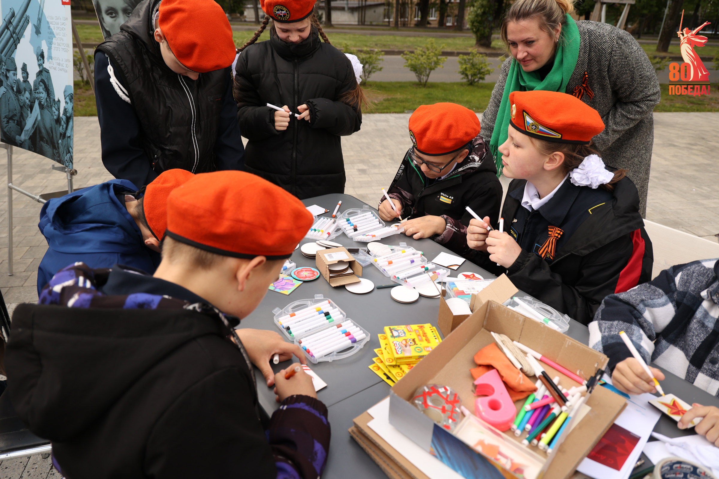 Особый интерес вызвала выставка художников-карикатуристов «Уроки истории», представляющая остроумный взгляд на события тех лет, напоминая о цене мира и недопустимости повторения трагедий. Мастера из союза художников Калининградской области провели увлекательный мастер-класс по созданию плаката «Победа», где каждый желающий смог внести свой вклад в художественное отображение Дня Победы. Работала «Полевая кухня», угощавшая всех желающих солдатской кашей и горячим чаем. Волонтеры раздавали георгиевские ленточки – символ памяти и благодарности героям. Кульминацией Всероссийской акции «Георгиевская ленточка» стало развертывание 80-метровой георгиевской ленты в сквере, символизирующей неразрывную связь поколений. Трогательным моментом стала тематическая акция «Вальс Победы». Под звуки песни «Майский Вальс» танцевальные пары кружились на площадке, исполняя вальсовые элементы, напоминая о радости Победы.