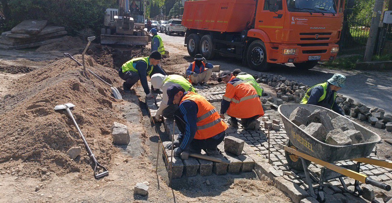 На Ялтинской готовят основание и укладывают плиты на временную дорогу в промзоне; на Букетной и Мариенко устанавливают и регулируют люки перед укладкой верхнего слоя асфальта, на Старш. Дадаева и на Карла Маркса идёт приёмка выполненных этапов ремонта.