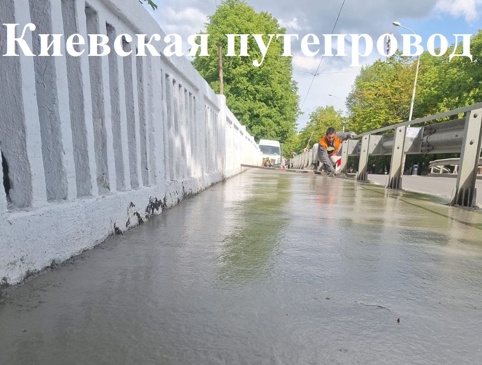 Подрядчик на обслуживании других мостов и путепроводов Калининграда продолжал техническое обслуживание Высокого и Юбилейного мостов, подземного перехода на Ленинском проспекте, закончил заливку бетона на тротуаре путепровода на Киевской (Садовой) и его шлифовку.
