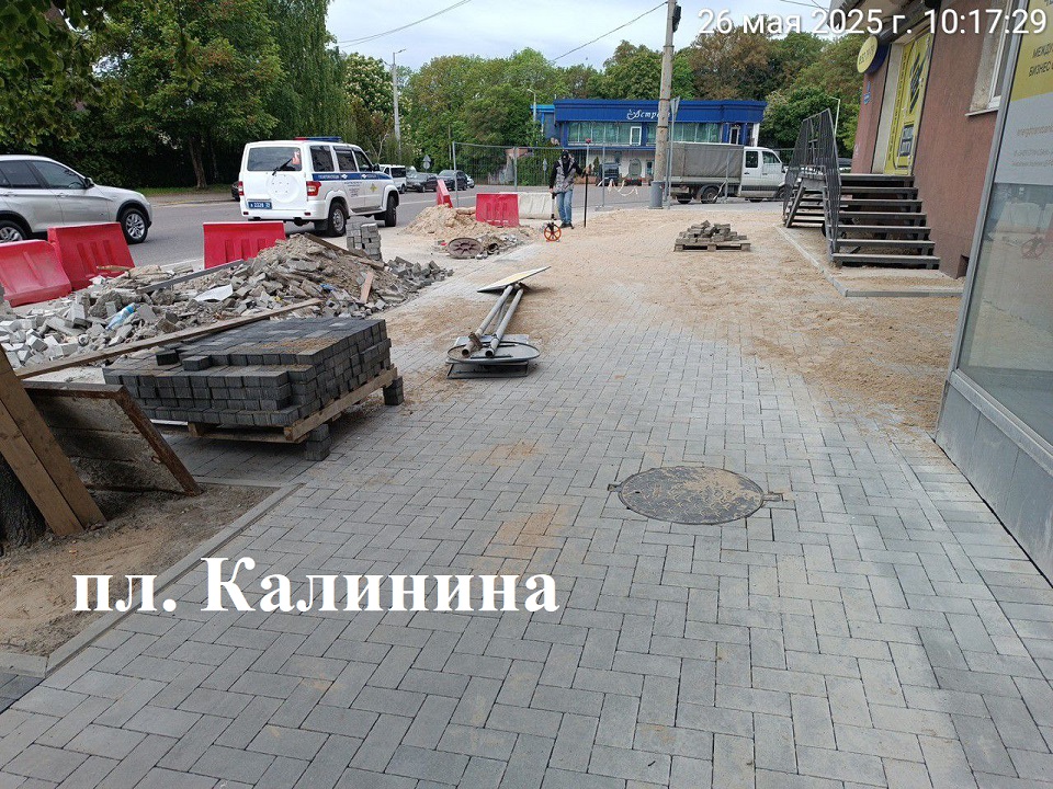 Продолжается ремонт городских тротуаров - на Чайковского устанавливают поребрик и борт, устраивают песчаное основание; на Дмитрия Донского готовят основание под парковку у детской областной больницы; на Беговой начали укладку плитки; на Лермонтова разрабатывают грунт по правой стороне; на Ясной уплотняют основание, регулируют люки; на площади Калинина прометают швы нового тротуара, устанавливают знаки; на Сержантской устанавливают ограждения, шурфят сети; на Сапёрной, Ватутина и Бассейной монтируют борт.