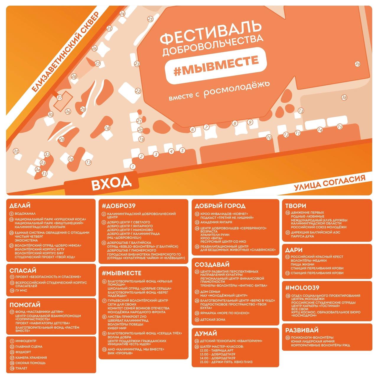 Соревнования будут проходить с 12:00 до 15:00 в рамках областного добровольческого фестиваля «МЫ ВМЕСТЕ». Подведение итогов и награждение абсолютных победителей состоится в 15:30. Все участники соревнований будут обеспечены фруктами от партнёра проекта — сети магазинов «СПАР».