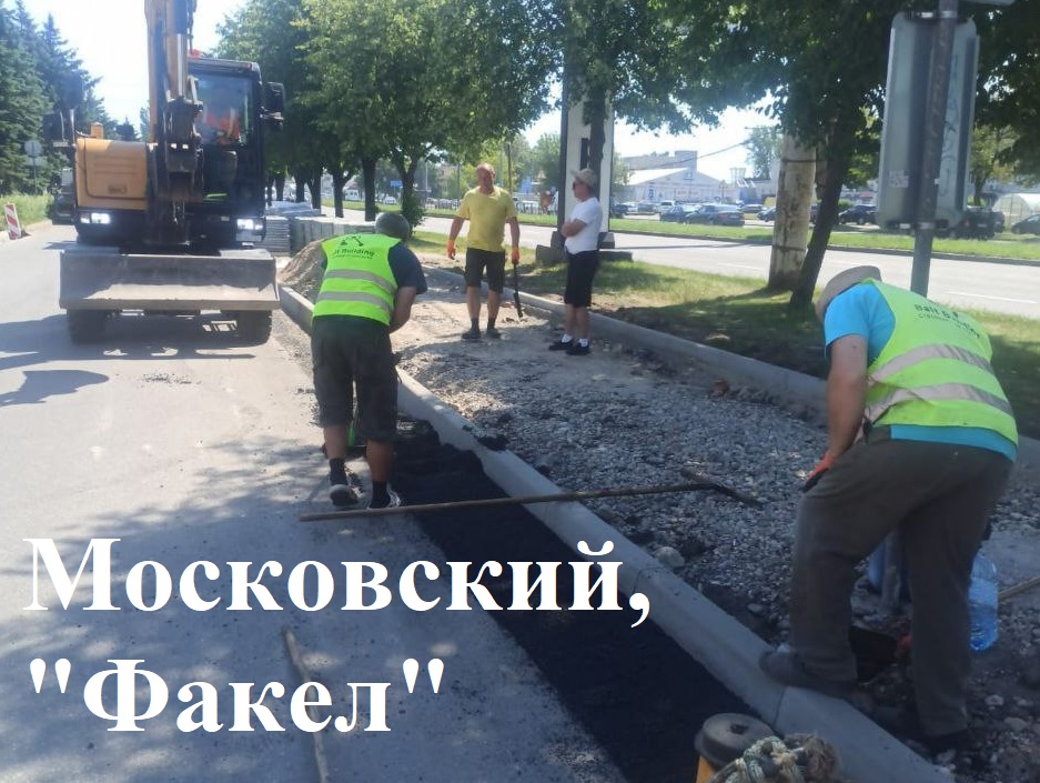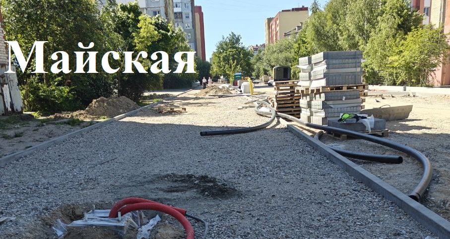 На Московском проспекте уложили уже половину тротуарной плитки в районе «Факела»; асфальтируют штробы после установки бортового камня. На Майской укладывают тротуарную плитку, устанавливают фундаменты под опоры освещения. На Проф. Севастьянова готовят основание под тротуар и укладывают плитку.
