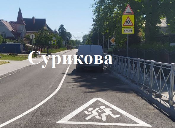 На Сурикова также закончили ремонт, на заключительном этапе нанесли разметку, сейчас монтируют знаки и ограждение, делают спуски с тротуаров на будущих примыканиях к Орудийной, где в июле начнётся капитальный ремонт. На Мариенко после всех строительных работ тоже нанесли разметку. На дороге в промзоне на Ялтинской уложили все плиты. Завершён ремонт Лейт. Яналова, осталось нанести разметку.