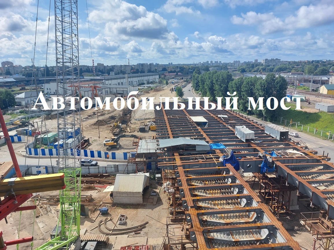 На автодорожном мосту трудятся 278 специалистов с 41 единицей техники. Идёт сборка металлоконструкций, армирование, монтаж опалубок, сборка смонтированных блоков на временных опорах, устройство стыков, погружение временных опор и труб стапельных опор, монтаж оголовков. Параллельно идут работы на сетях газоснабжения, канализации, теплосетей, высоковольтной линии. Строительство моста ведется в рамках национального проекта «Инфраструктура для жизни» регионального проекта «Региональная и местная дорожная сеть».