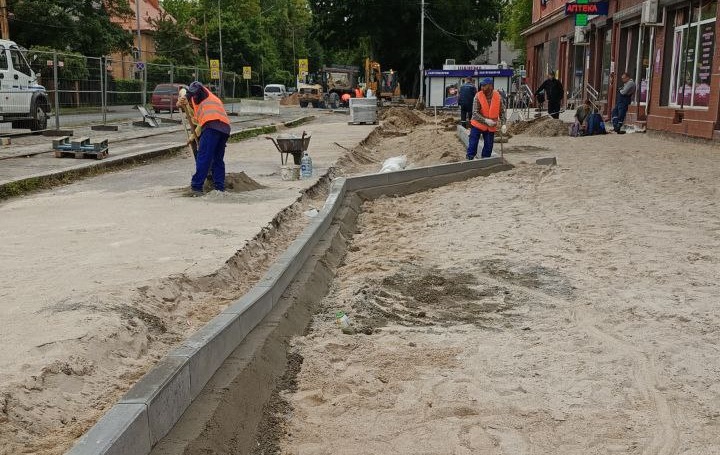 На улицах Калининграда в разгар сезона продолжают обновлять тротуары и проезжую часть.