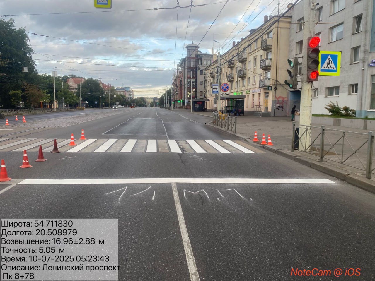 Дорожники с учётом погоды обновляют дорожную разметку, в том числе на только что отремонтированном участке Ленинского проспекта.