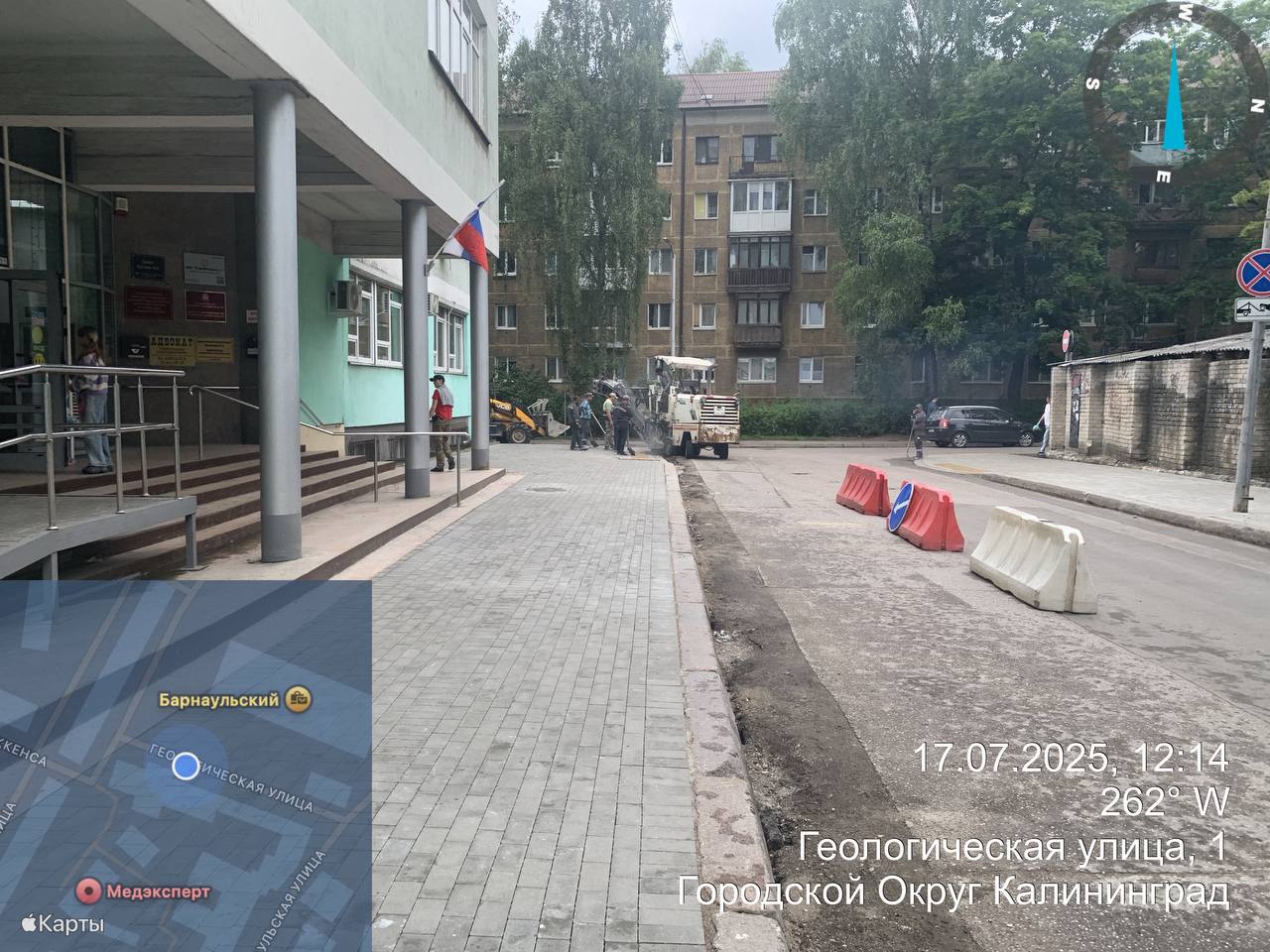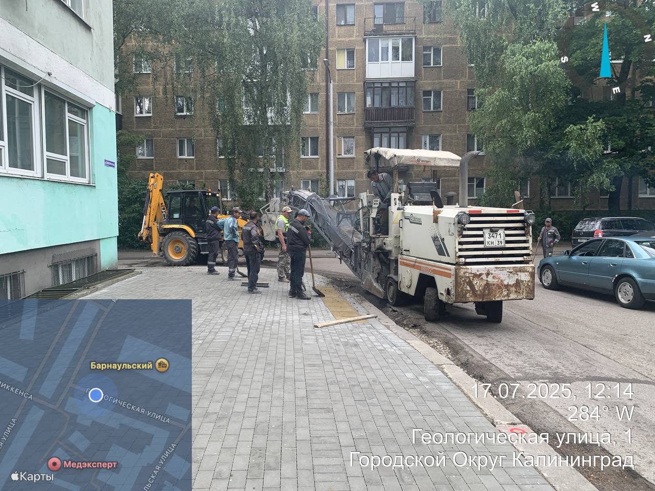 На Елизаветинской у СК «Янтарный» и на Сапёрной укладывают плитку и регулируют люки. На Ясной также регулируют люки и заделывают швы. По Беговой подрезают плитку и перекладывают брусчатку. На Геологической заканчивают мощение второго тротуара и укладывают асфальт на штробу по проезжей части вдоль бортового камня. На Пролетарской у перекрёстка с Проф. Баранова понижают бортовой камень у перехода, перекладывают мостовую. В Южном переулке от Багратиона до Эльблонгской отсыпают песчаное основание, ставят борт будущего тротуара.