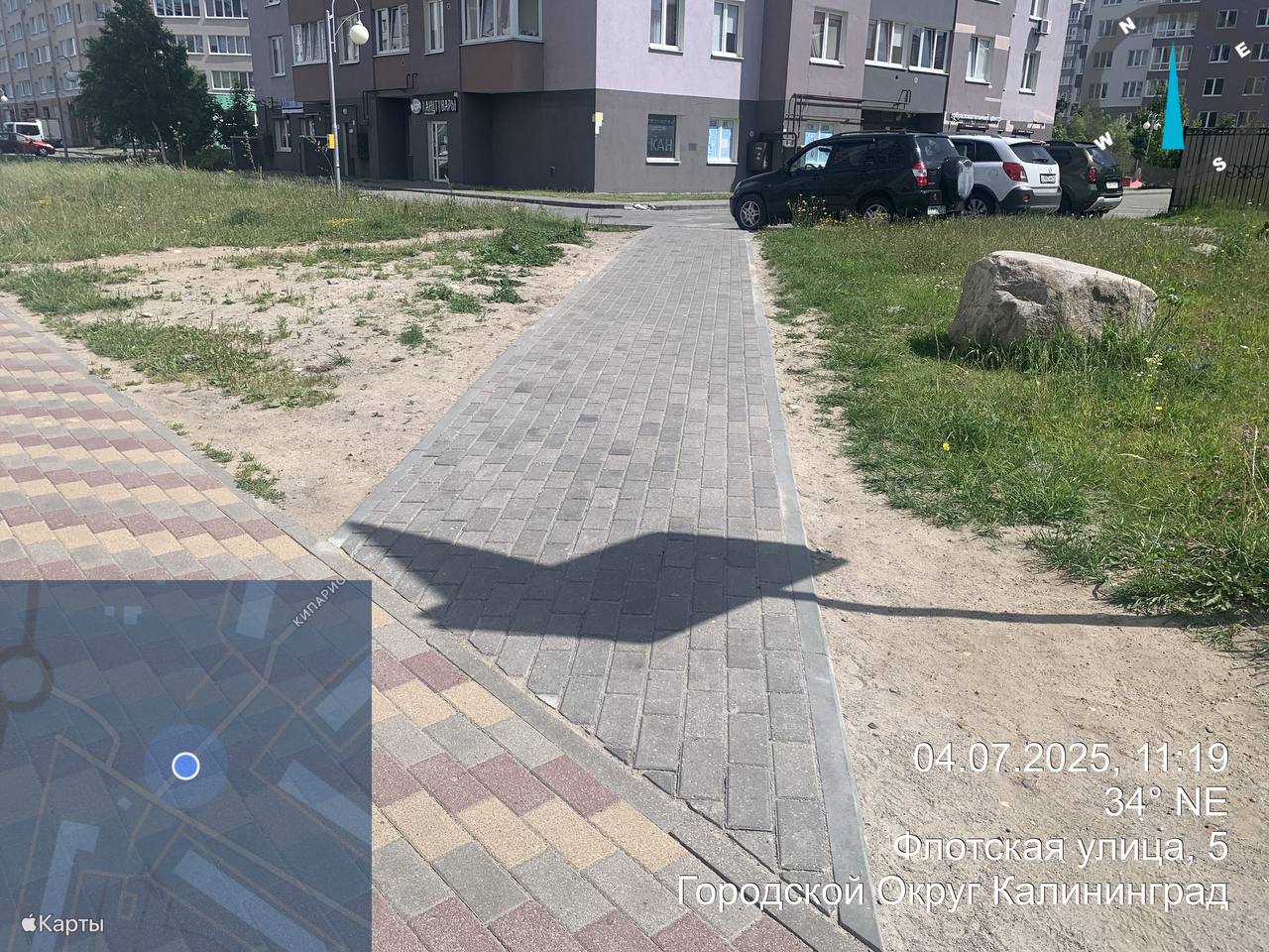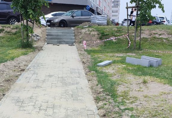 На двух таких тропинках, у дома № 9 по ул. Флотской, где раньше из-за перепадов высот жители спускались по склону, дополнительно предусмотрели удобные ступеньки.
