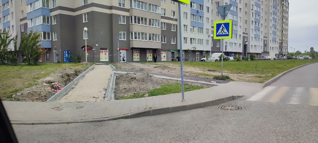 На Крымском проезде в районе пешеходного перехода для мам с колясками и людей, пользующихся инвалидными колясками, устроили новый участок тротуара, позволяющий с удобством объехать лестничный пролет.