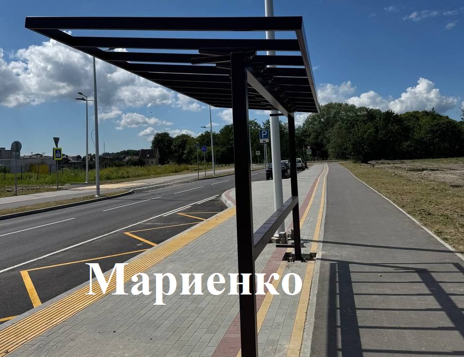На новой улице Мариенко монтируют остановочные павильоны под новый маршрут автобусов.