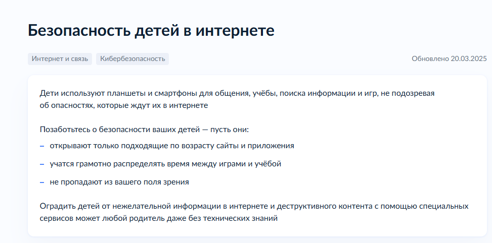 Помимо рекомендаций и инструкций по настройкам средств родительского контроля в указанный раздел вошла информация о бесплатных сервисах и материалах по цифровой безопасности и опциях детского режима в различных популярных сервисах и приложениях.