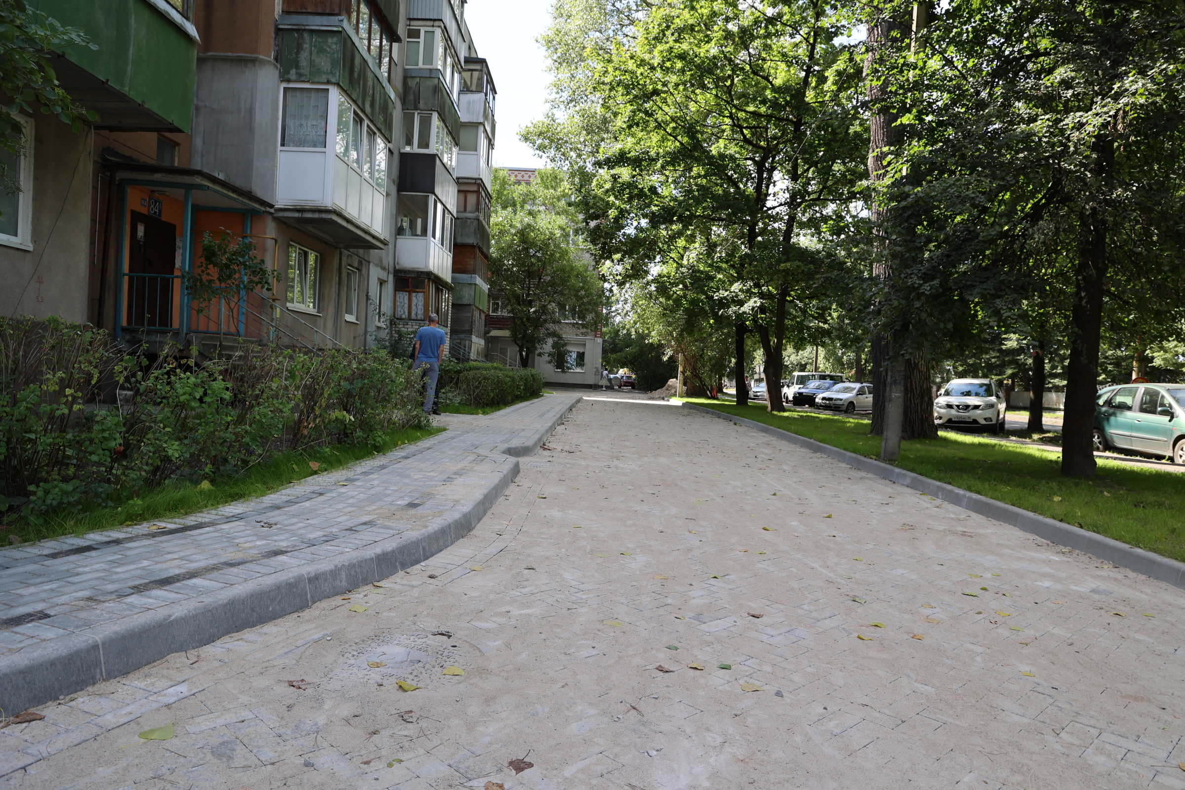 На улице Подп. Емельянова,84А, 86А, 88А, реализуется масштабный проект стоимостью 45,2 млн рублей. Работы завершатся к ноябрю 2025 года. Планируется комплексное благоустройство с установкой малых архитектурных форм, озеленением территории (посадка 47 деревьев и кустарников) и устройством современной системы ливневой канализации.