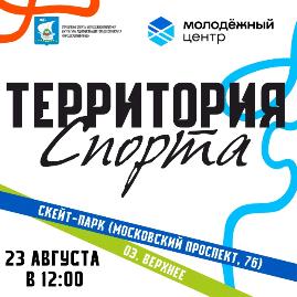 Приглашаем всех жителей и гостей города принять участие в ежегодном спортивном празднике «Территория спорта», который состоится 23 августа 2025 года сразу на двух площадках: на территории Верхнего озера и в скейт-вело парке под вторым эстакадным мостом (Московский пр-т, 76).