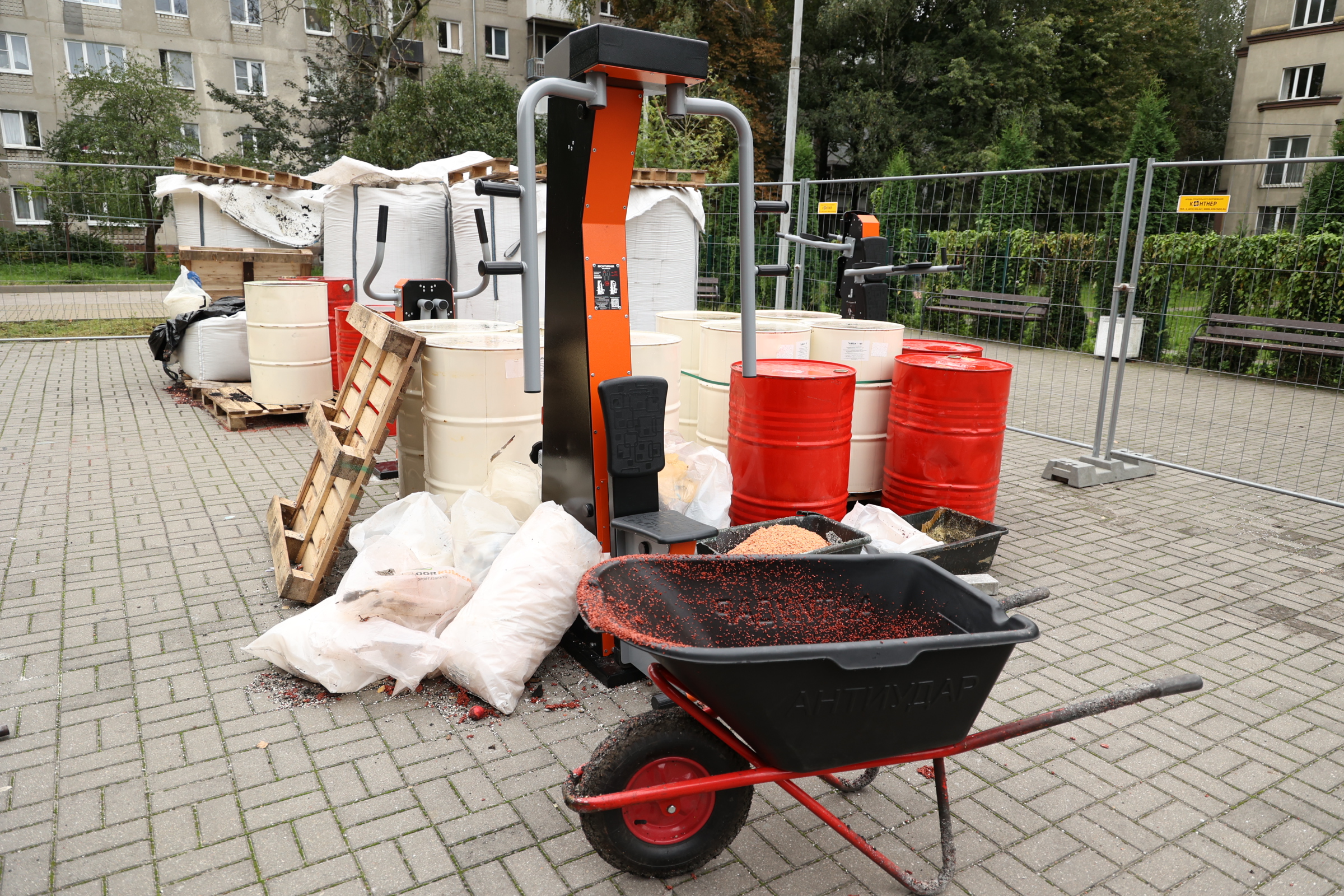 На ул. Портовой, 27 выполнение работ составляет 90% (сумма по контракту 4, 60 млн руб). Здесь уже поставили детские игровые комплексы и тренажёры, если позволит погода, обещает подрядчик, за выходные зальют травмобезопасное покрытие на мини-футбольном поле, после чего можно начинать приёмку работ.