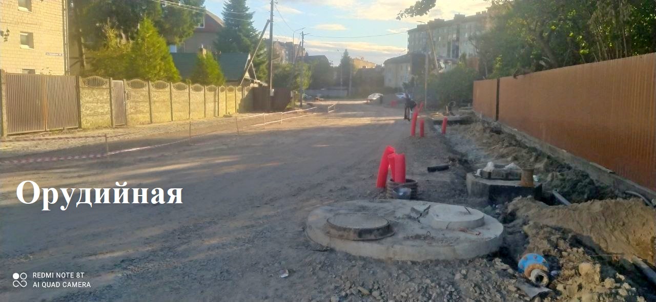 На первом участке капремонта Орудийной отсыпали проезжую часть в щебне, открыли движение, выделили временную пешеходную зону, начали земляные работы на следующем участке. На дороге к СНТ «Мечта» и зоне отдыха на карьере укладывают асфальтобетон.
