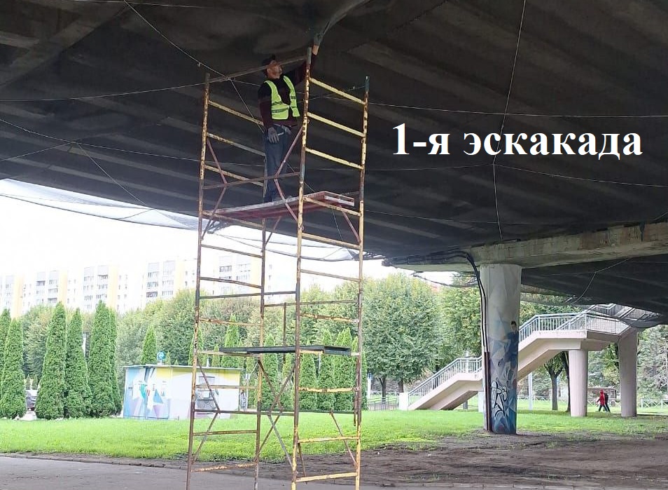 Мостовики ремонтировали швы путепровода по Аллее смелых и работали в подмостовом пространстве 1-й эстакады.