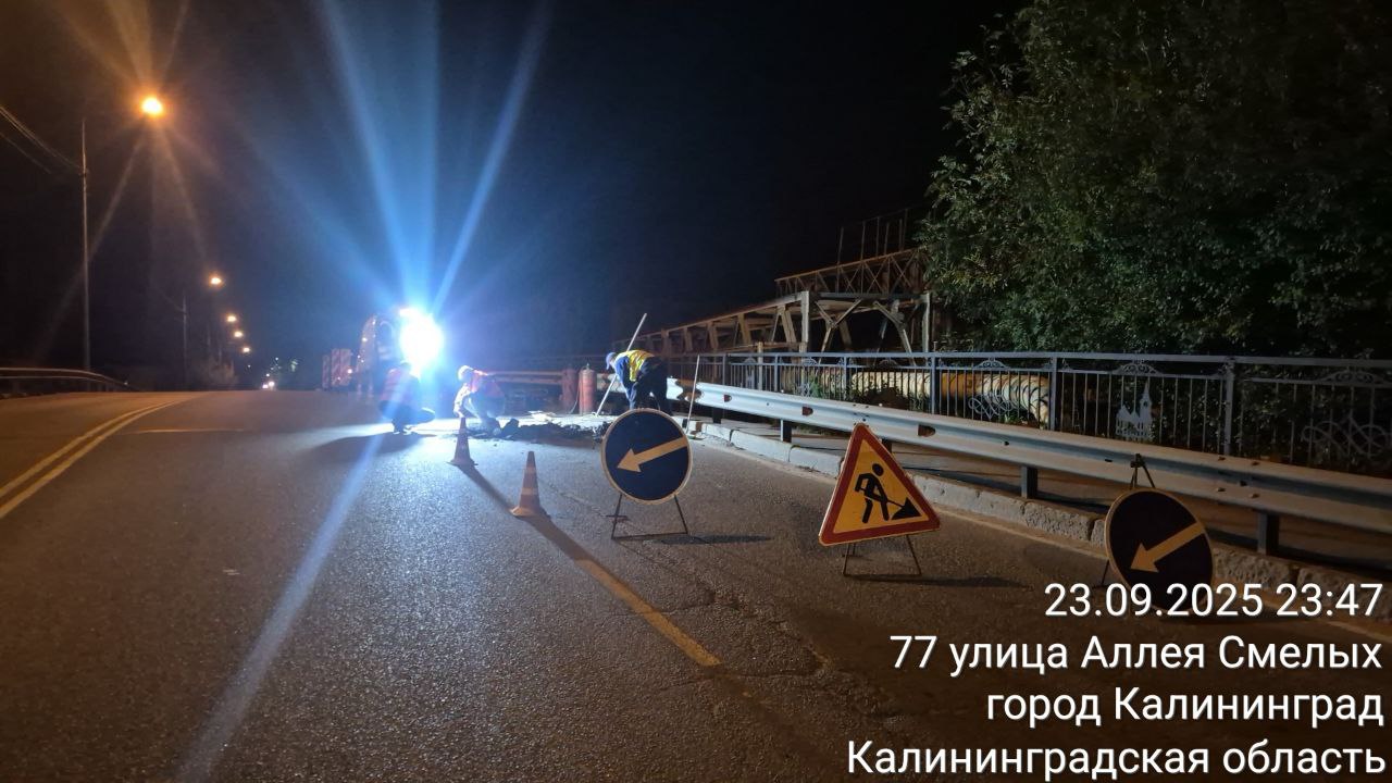 На самом большом объекте Калининграда, автомобильном мосту, по графику извлекали шпунт котлована опоры № 4; устраивали стапель в пролете 4-5; вели сварку металлоконструкций в пролете 5-7; разрабатывали котлован, укрепляли котлован, монтировали и стыковали трубы участков 4, 5, 8 сети напорной канализации от КНС8; вели гидроизоляцию, обратную засыпку и устройство дренажа подпорной стены ПС3; армировали левую опоры № 5, 10 этап; отсыпали земляное полотно съезда С3; проводили гидроизоляцию перекрытия лоткового канала УТ3-ТК3 и оголовков свай.