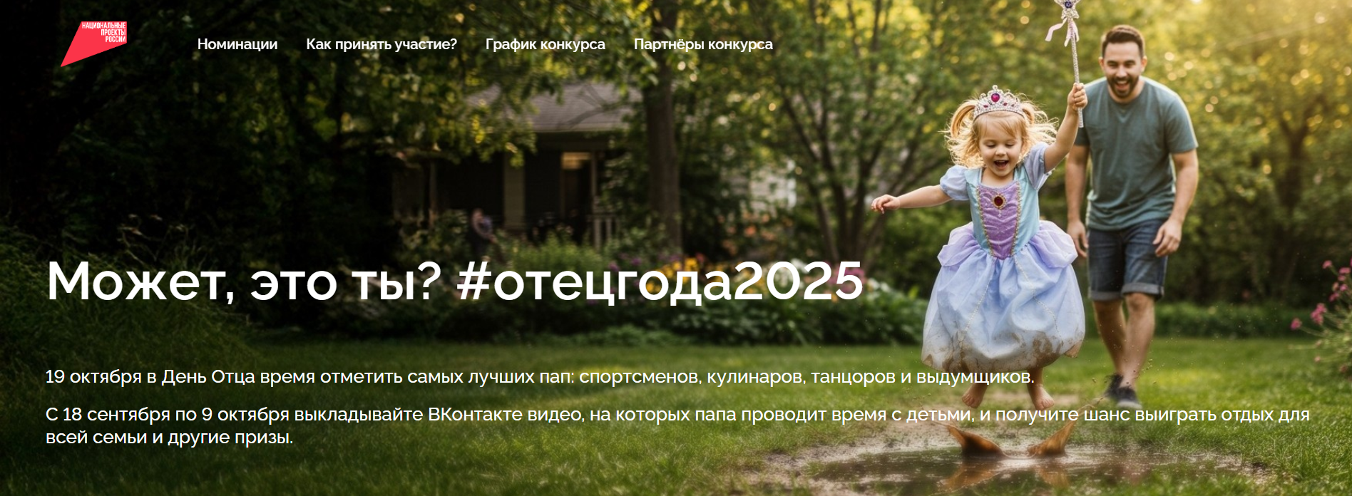 Итоги будут опубликованы в День отца, 19 октября. Подробнее об условиях участия в конкурсе «Отец года», а также партнерах и призах можно узнать на сайте отецгода2025.рф.