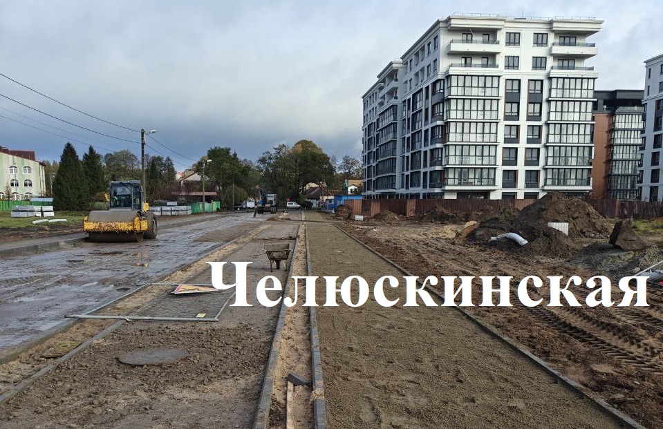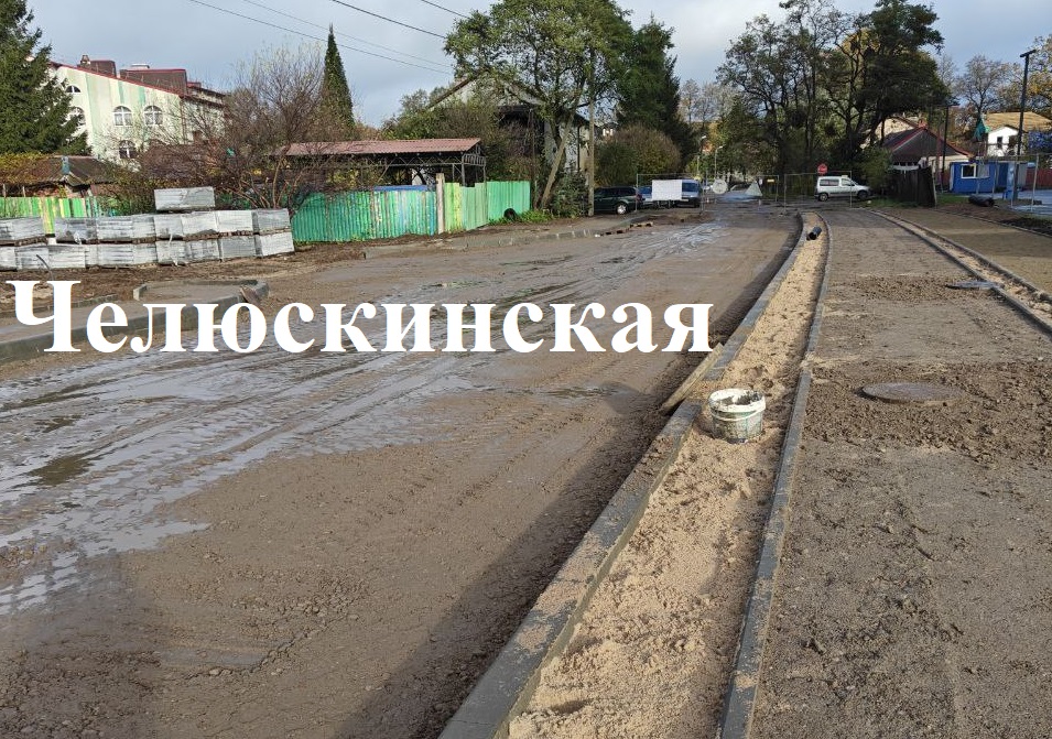 На соседней Челюскинской – схожие работы: устройство дождевой канализации и основания под проезжую часть, тротуары и велодорожку отсыпают слои песка и щебня, прокладывают кабели муниципальной канализации и электрических сетей.