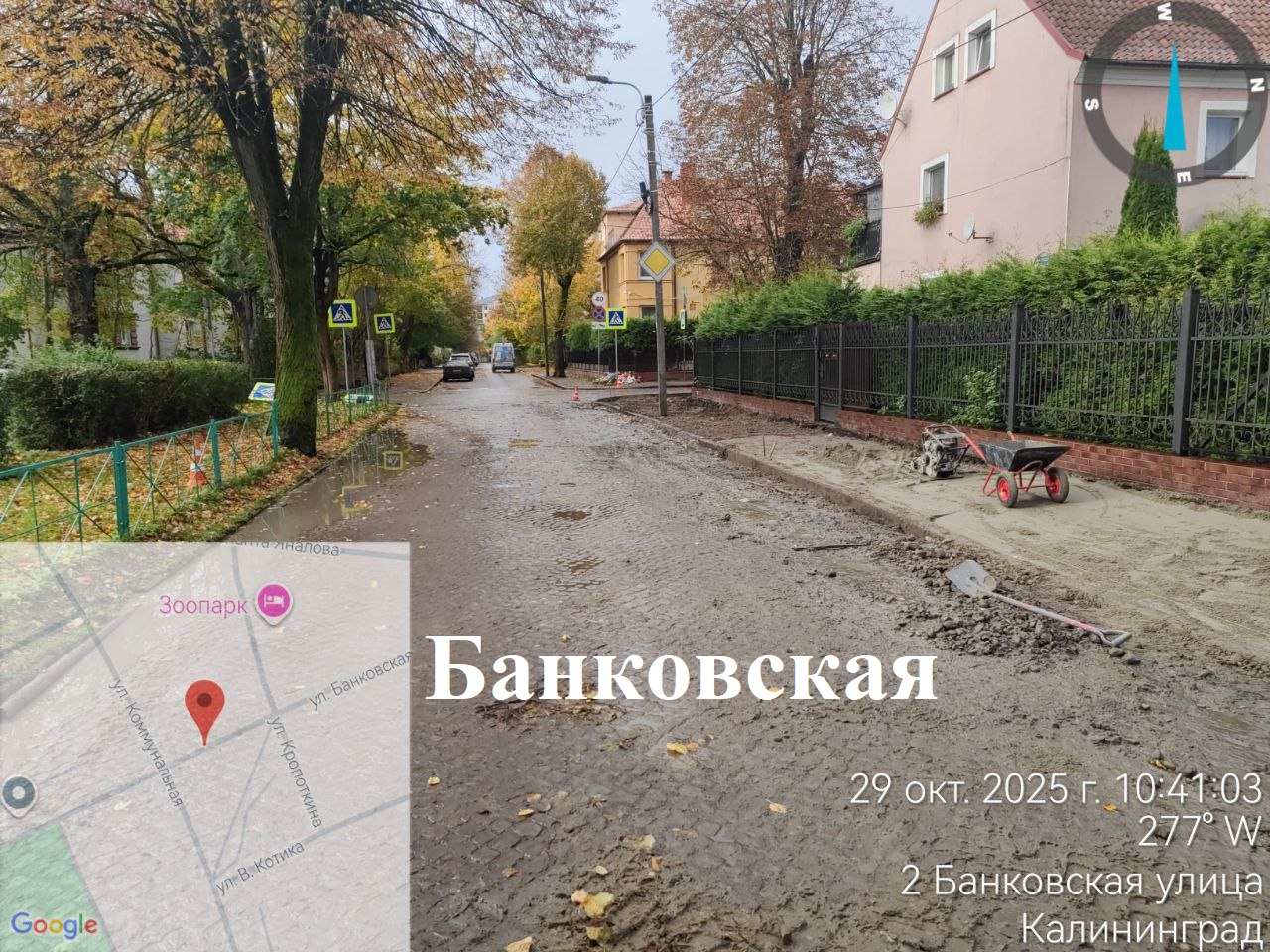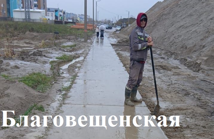 По Благовещенской продолжают готовить основание под проезжую часть, укладывают тротуарную плитку, разрабатывают грунт под коллектор со стороны Суздальской. В ходе работ дорожники поддерживают в чистоте временную дорожку из плит к школе и детскому саду.