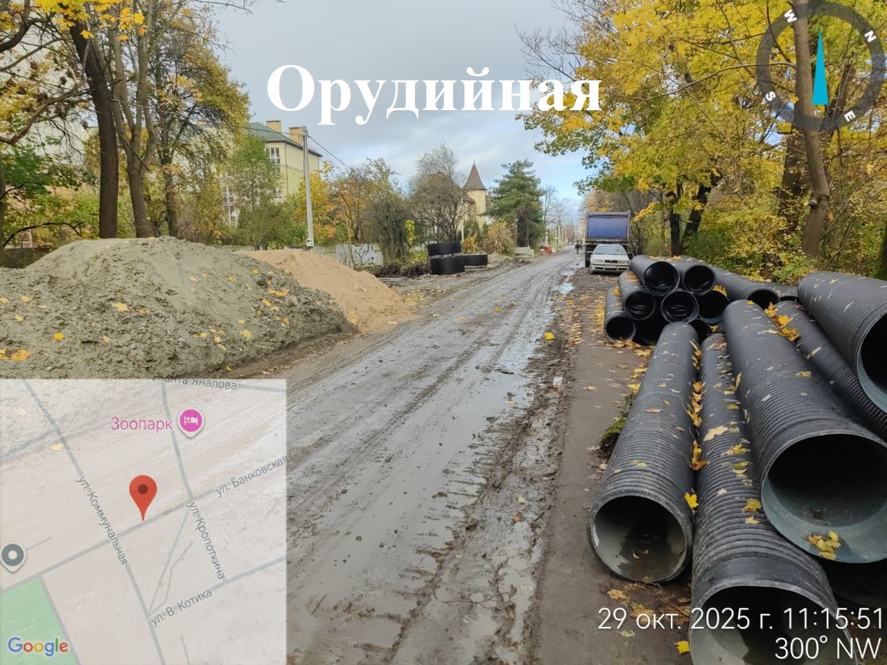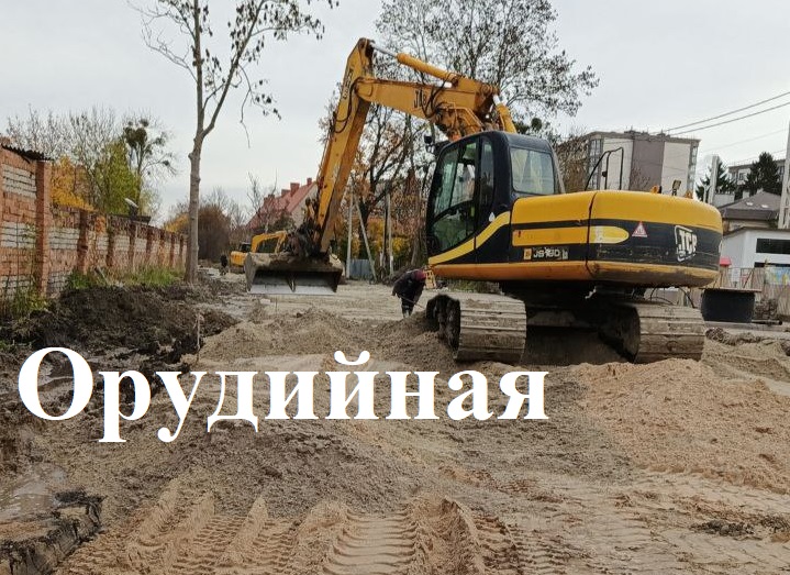 На Орудийной продолжают тянуть подземные коммуникации и устраивать песчано-щебёночное основание.