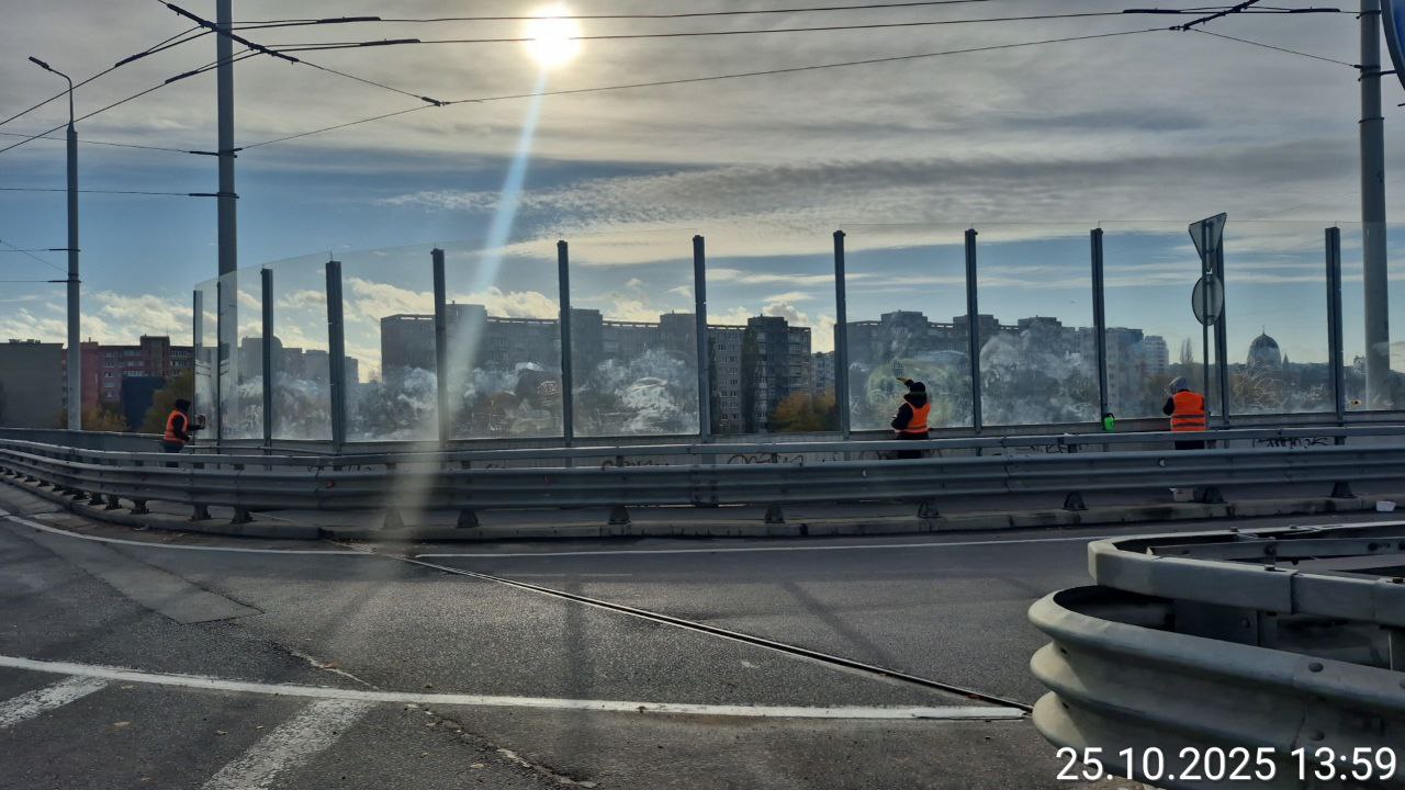 Мостовики на неделе ликвидировали граффити и другие следы вандализма на шумовых стенках по Московскому проспекту - 9 Апреля.