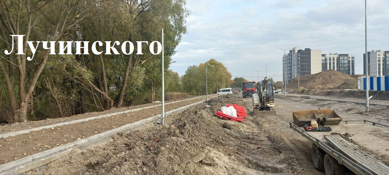 На строительстве 2-го этапа улицы Лучинского ведут отсыпку щебня и песка на проезжую часть и тротуар. Вдоль будущей улицы устанавливают тротуарные опоры освещения и прокладывают электрокабель. Окончание работ - ориентировочно в середине декабря.