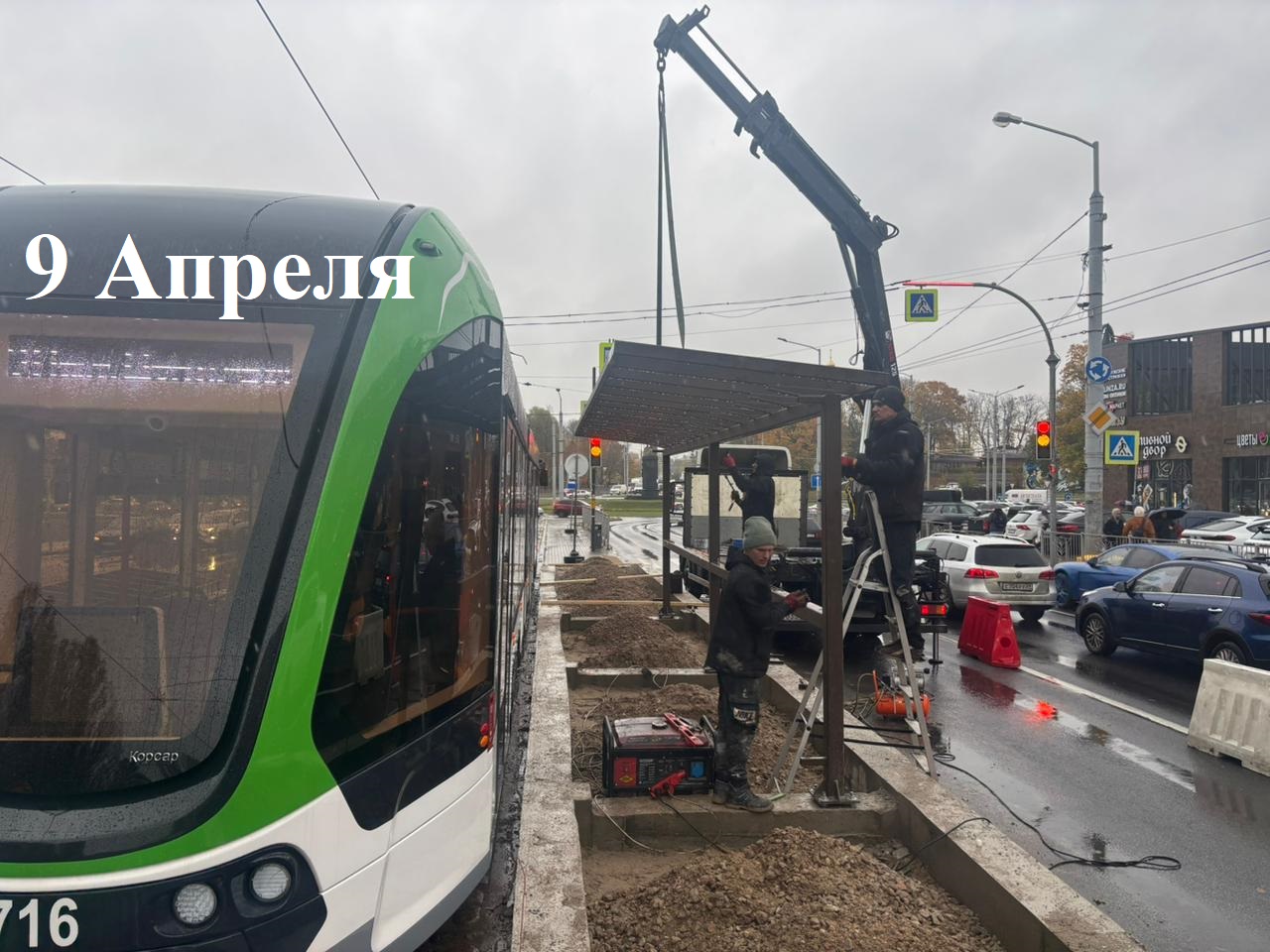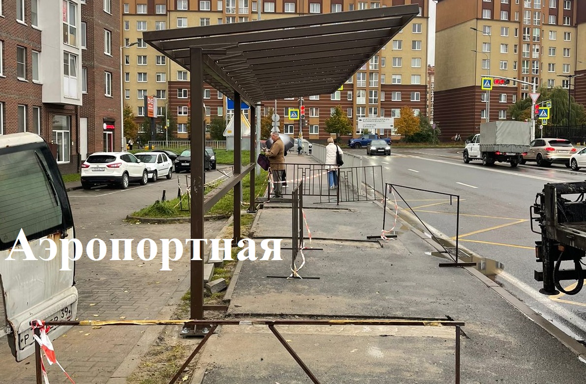 На трамвайных остановках по 9 Апреля, где трамваи идут по выделенной полосе, на этой неделе готовят основания под павильоны, мостят площадки ожидания, устанавливают каркасы павильонов. Работы на этом участке проводят без остановки движения трамваев. Каркас смонтировали и на очередной автобусной остановке по Аэропортной.