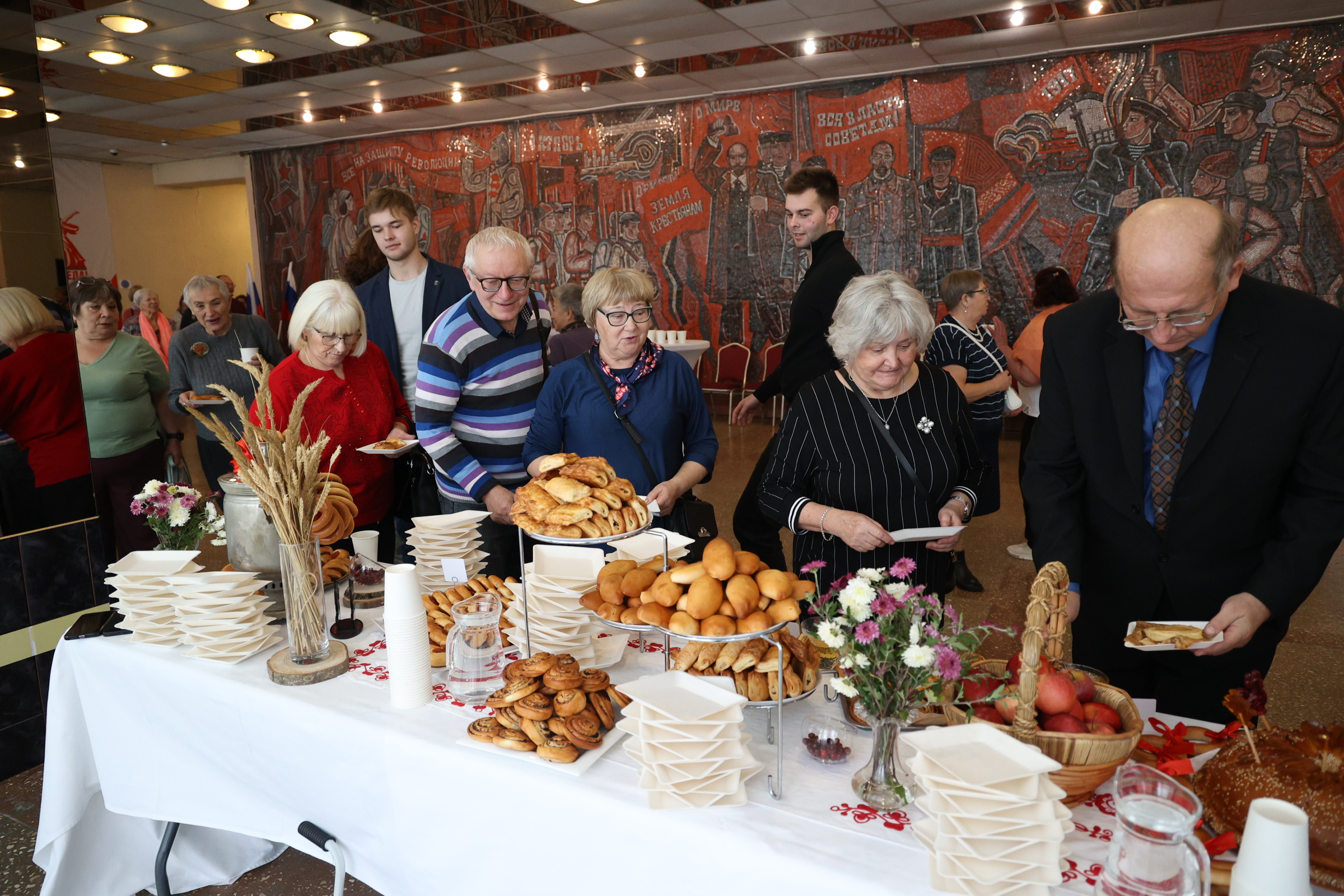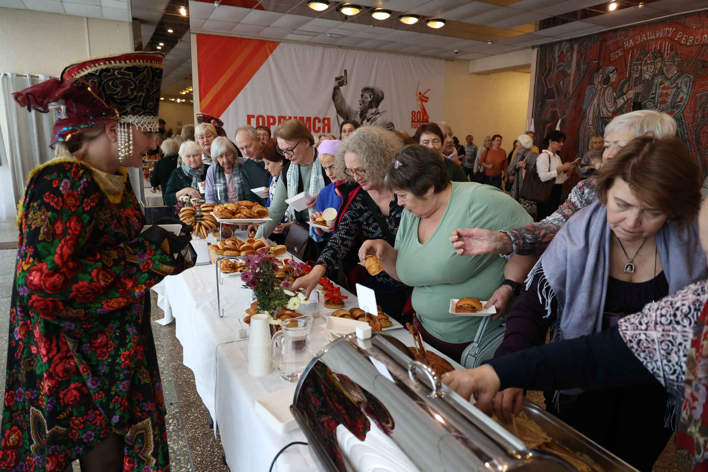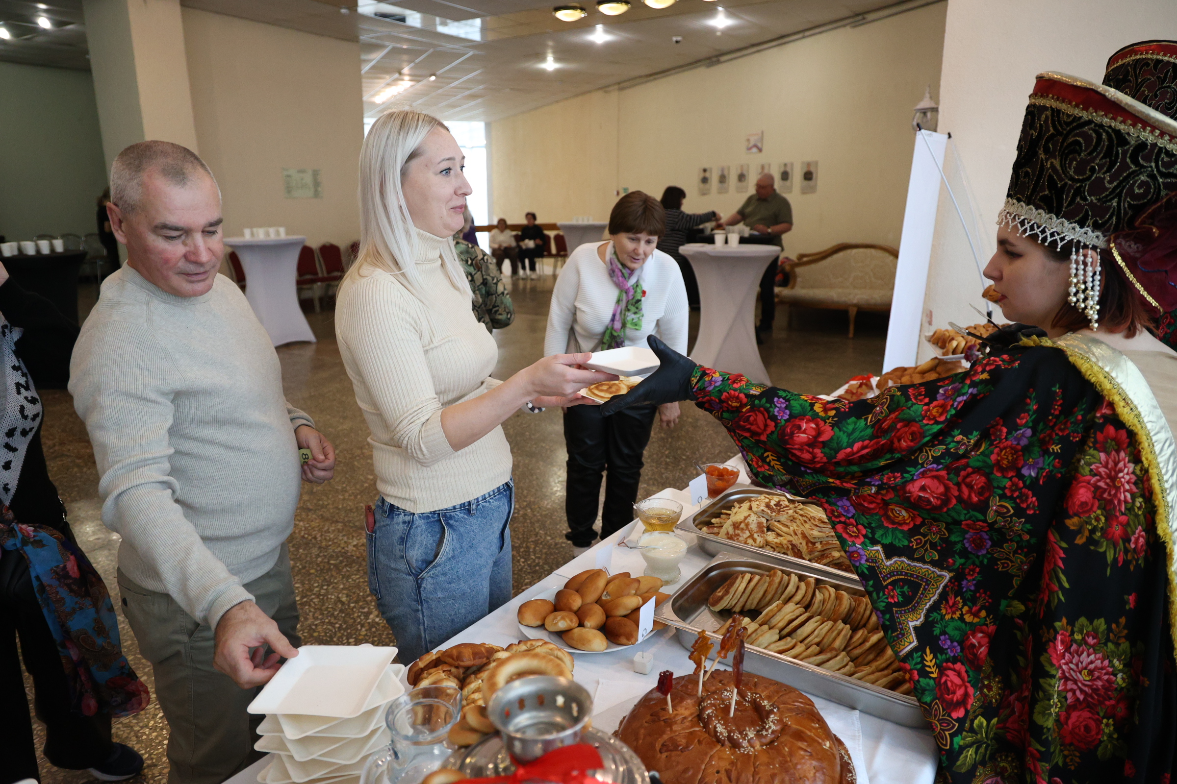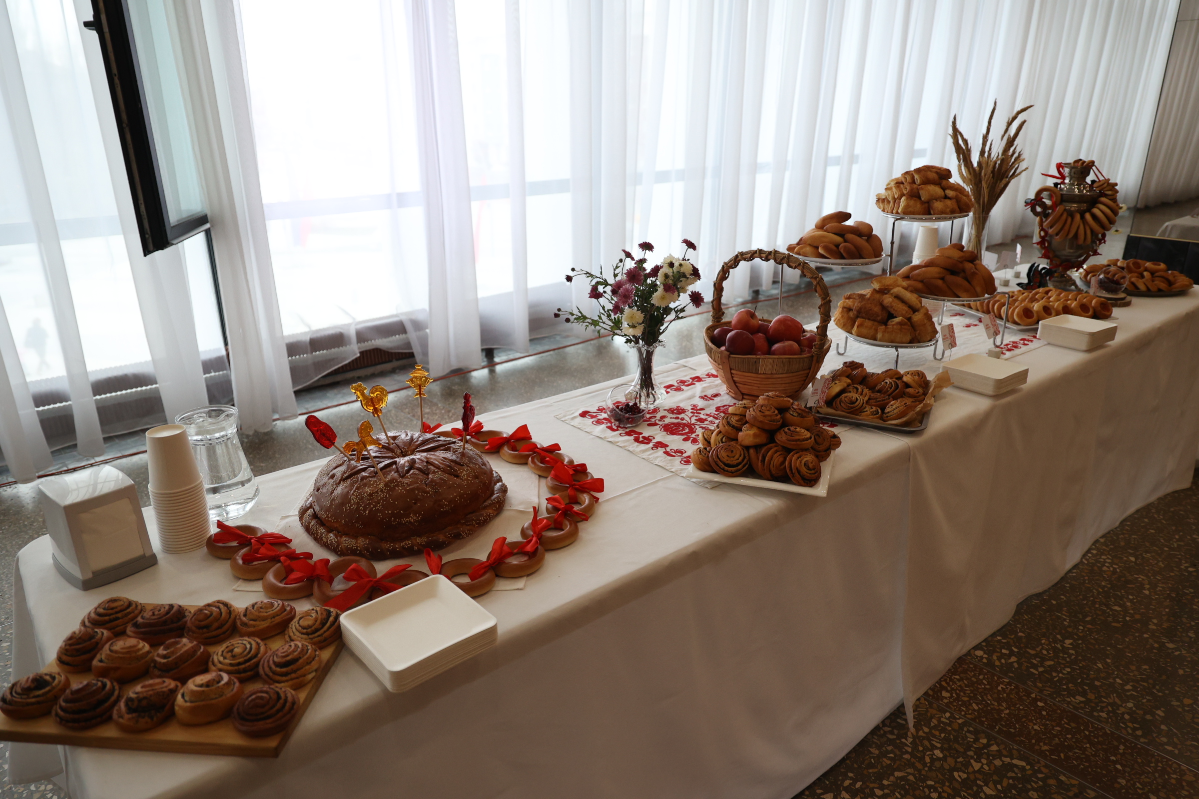 Завершился праздник ярким выступлением группы VIVА и фестивалем русской кухни. На третьем этаже были накрыты стилизованные столы с традиционными русскими угощениями.