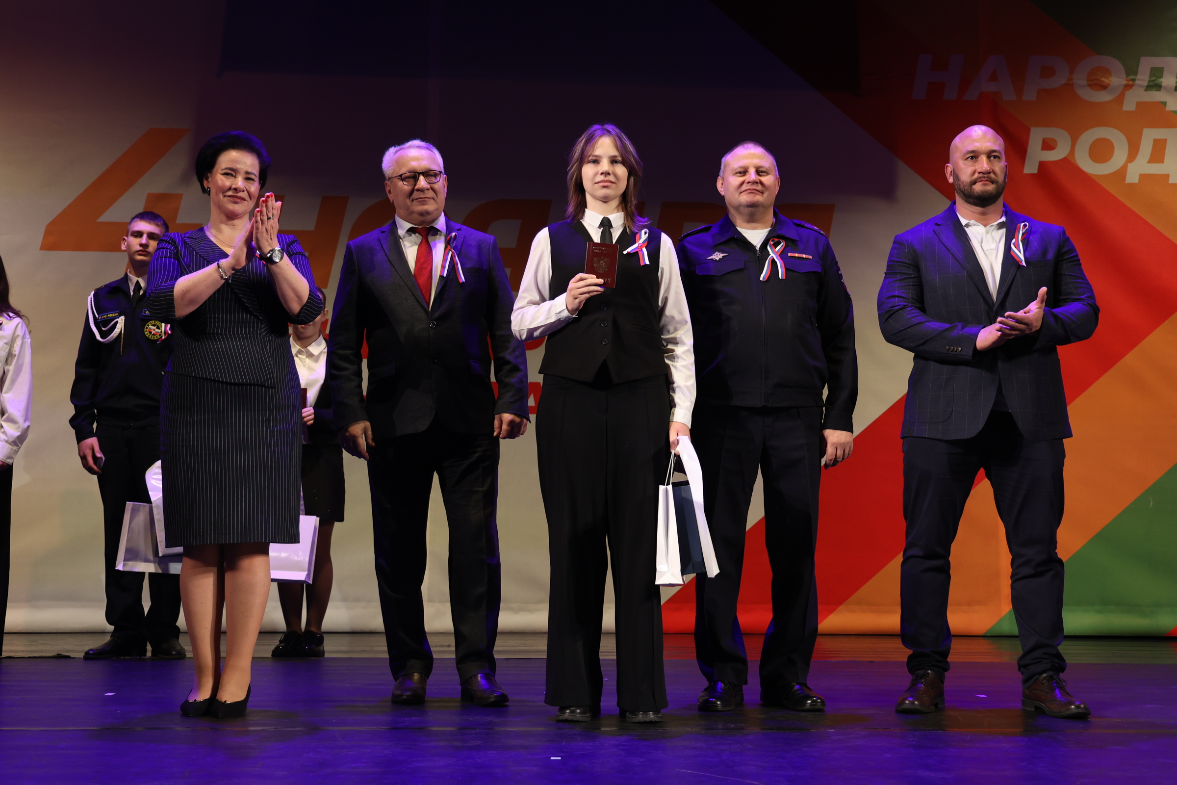 Также в рамках праздничной программы пятнадцать молодых калининградцев получили свои первые паспорта, символизирующие вступление во взрослую жизнь и ответственность перед Родиной.