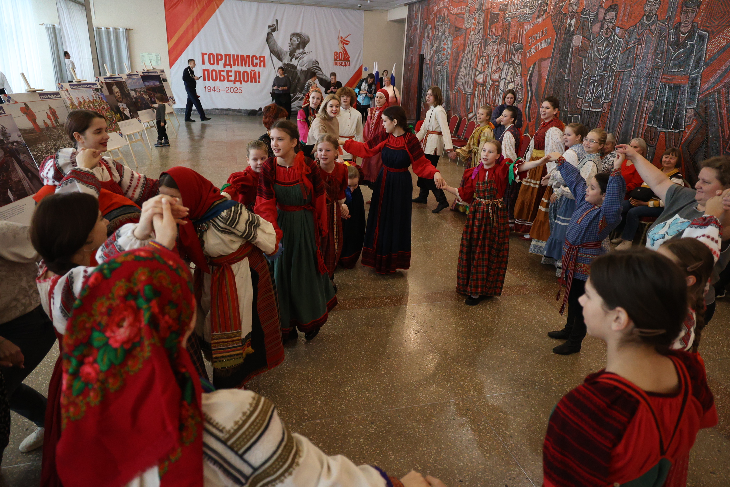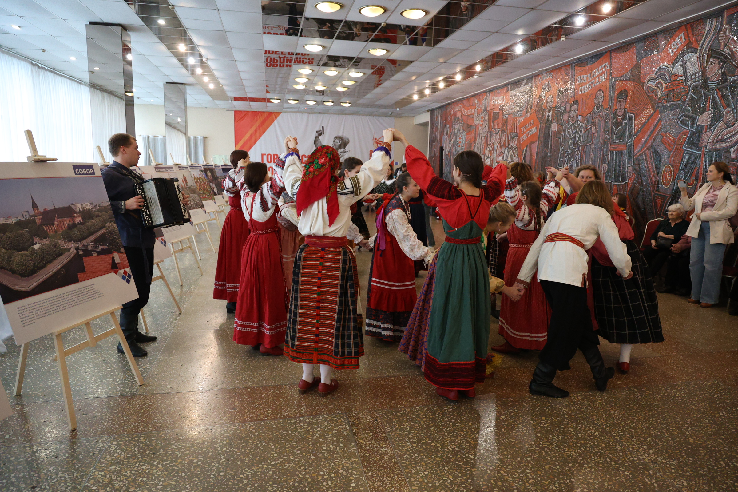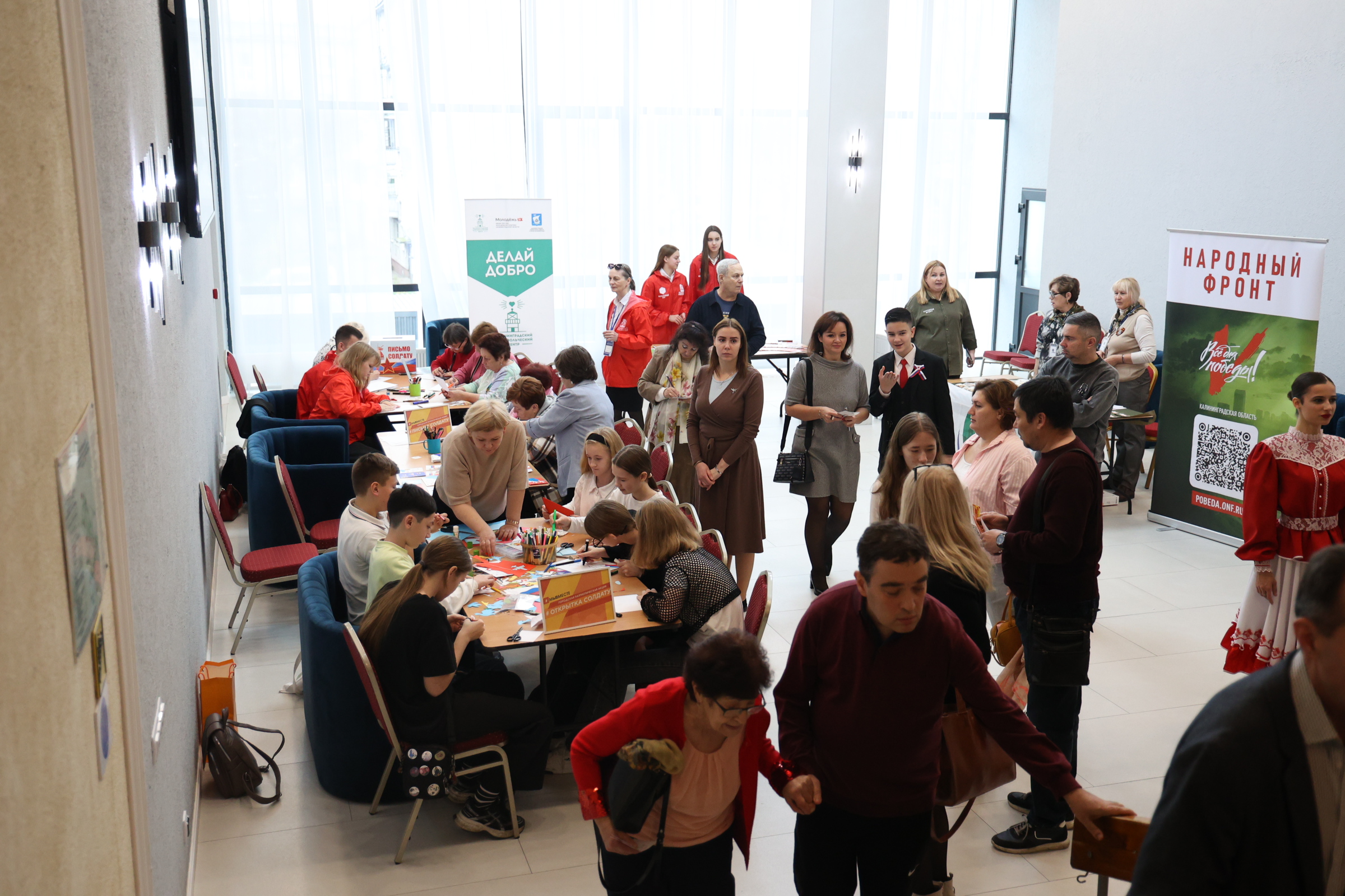 Калининградский театр эстрады распахнул свои двери для многочисленных гостей праздника. На втором этаже театра развернулись тематические зоны «Письмо солдату», «Открытке солдату» и фотовыставка «Мозаика впечатлений. Регион 39».