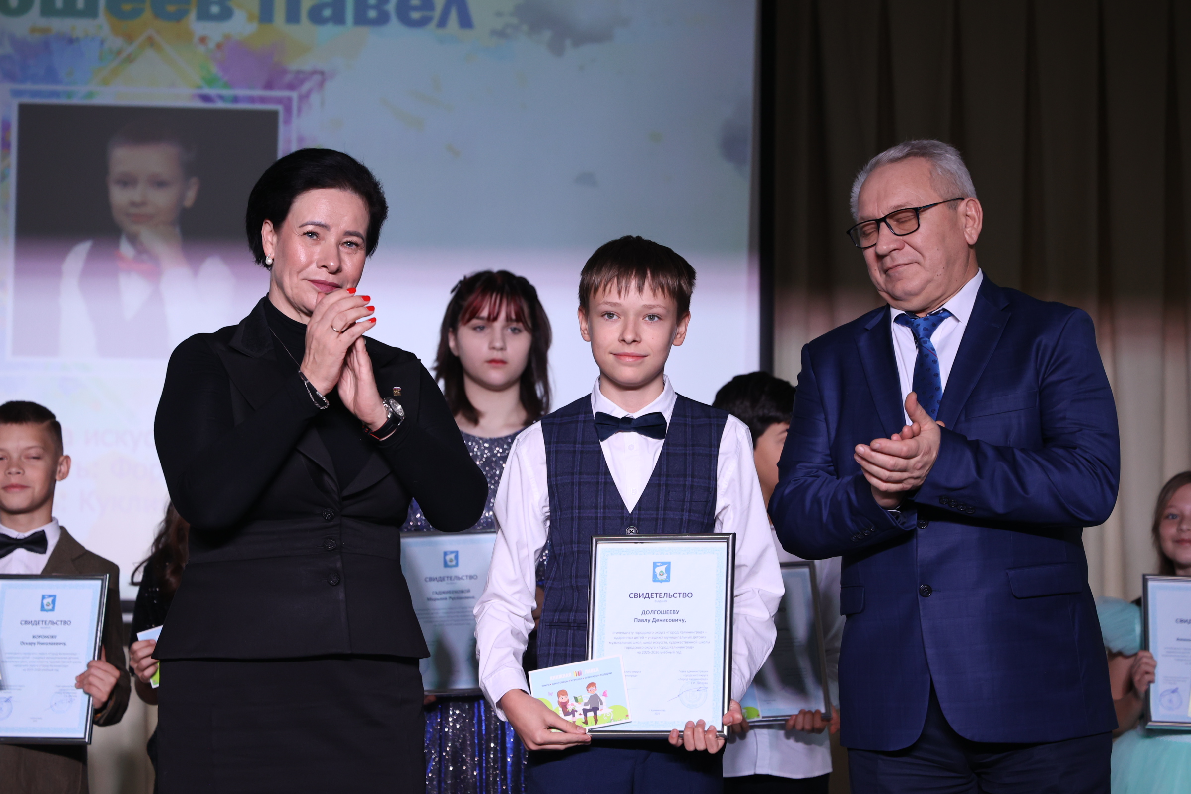 В рамках мероприятия Елена Дятлова прослушала творческие номера одаренных учащихся и ознакомилась с выставкой работ художников‑стипендиатов.
