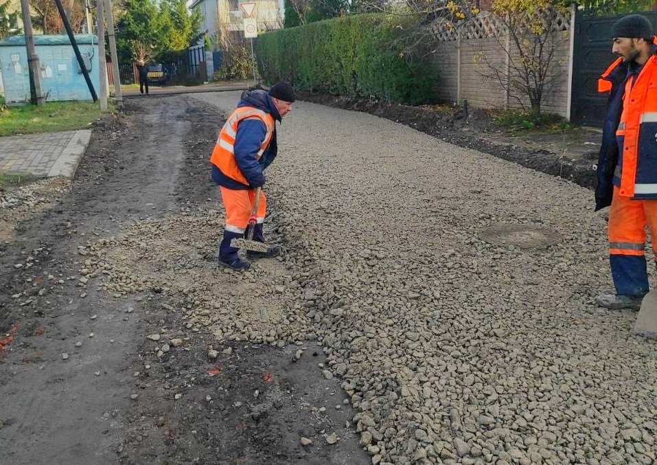 На строительстве 2-го этапа улицы Лучинского ведут отсыпку щебня и песка, продолжают монтаж опор освещения.