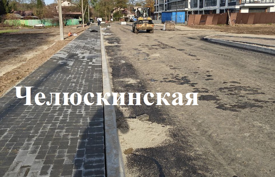 В микрорайоне им. Александра Космодемьянского на Челюскинской уложили плитку на тротуарах и нижний слой асфальтобетонного покрытия на очередном участке. Продолжают устройство основания велодорожки и прокладку коммуникаций.