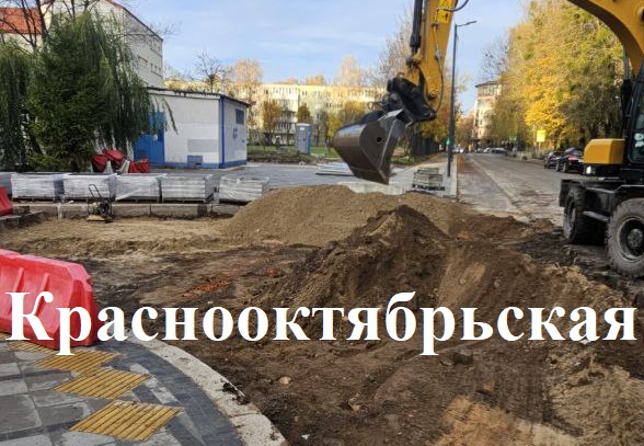 На Краснооктябрьской сегодня планируют уложить асфальт на велодорожку и начать демонтаж старого покрытия на противоположной стороне. В Трамвайном переулке устраивают основание, монтируют тротуарную плитку и бортовой камень.