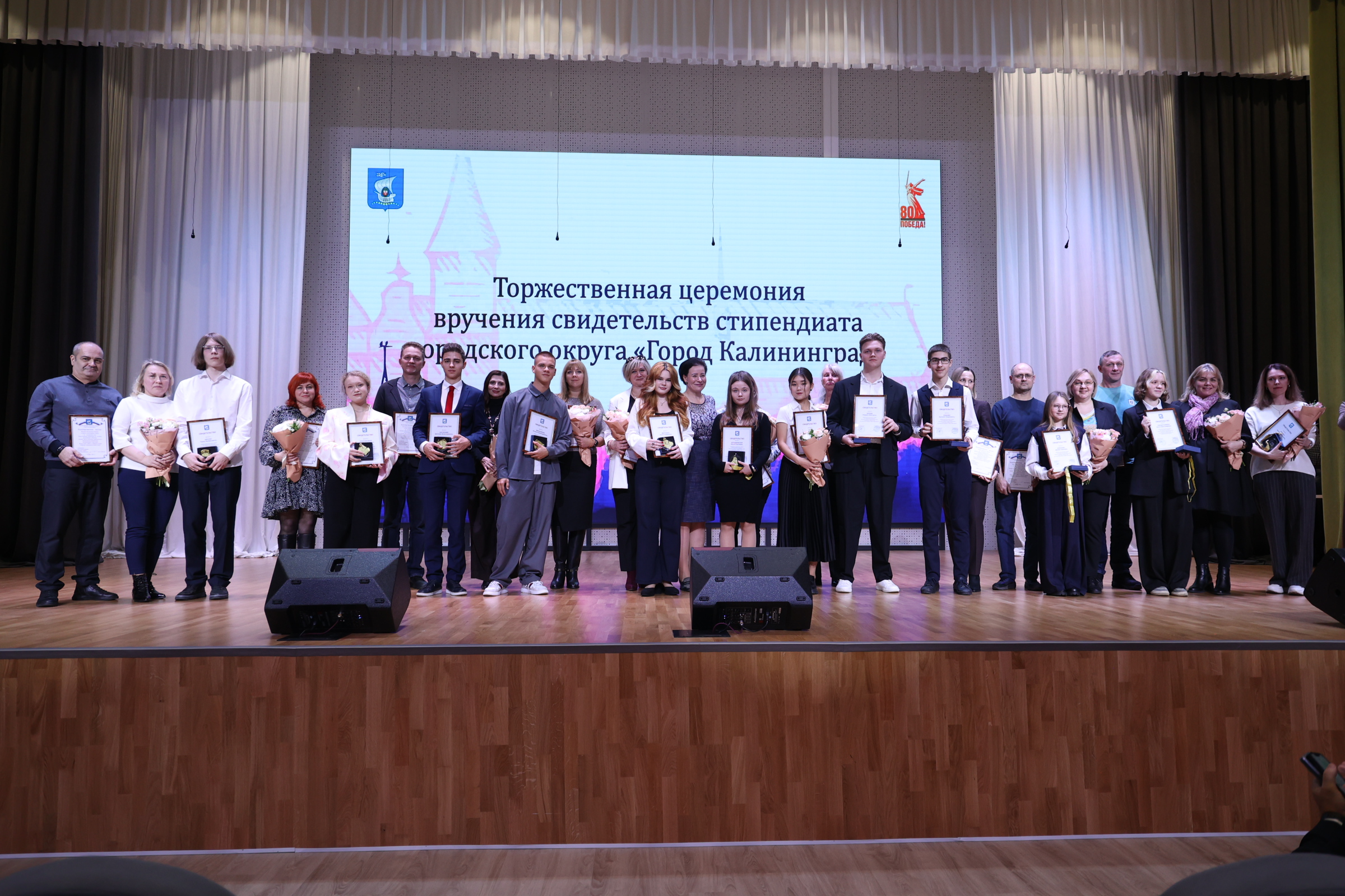 Сегодня состоялась торжественная церемония вручения свидетельств стипендиата городского округа «Город Калининград» на 2025-2026 учебный год.