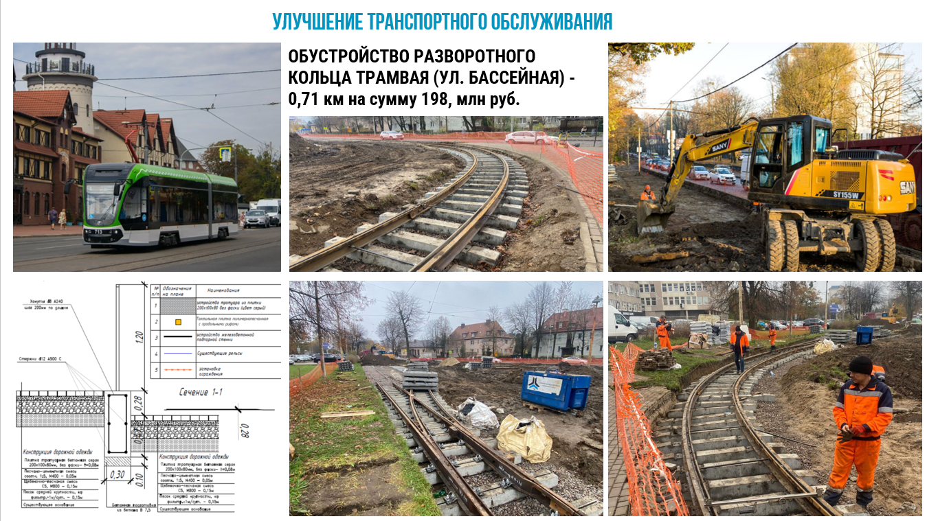 Для улучшения транспортного обслуживания населения, повышения эффективности и качества перевозок пассажиров, проводятся работы по капитальному ремонту действующей трамвайной инфраструктуры от Фестивальной аллеи до КОП ул. Бассейная. Объём финансирования предусмотрен в размере порядка 198,2 млн руб. Реализация проекта позволит увеличить скорость сообщения на участке до 20-25 км/ч (ранее фиксировалась 3-5 км/ч). Проводятся работы по обустройству приподнятых платформ и навесов шести остановочных комплексов по 9 Апреля.